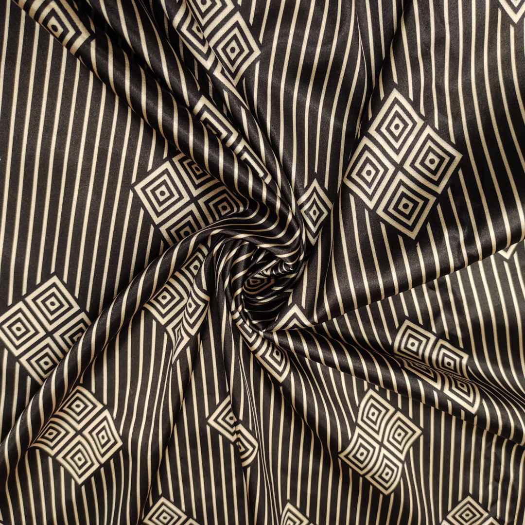 Tessuto Satin a fantasia motivo astratto beige scuro – nero