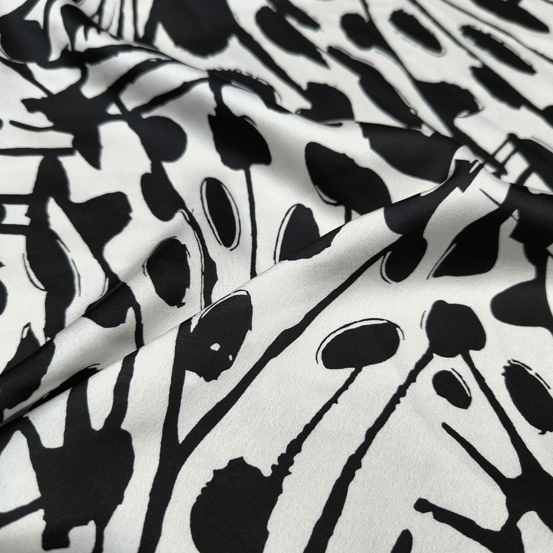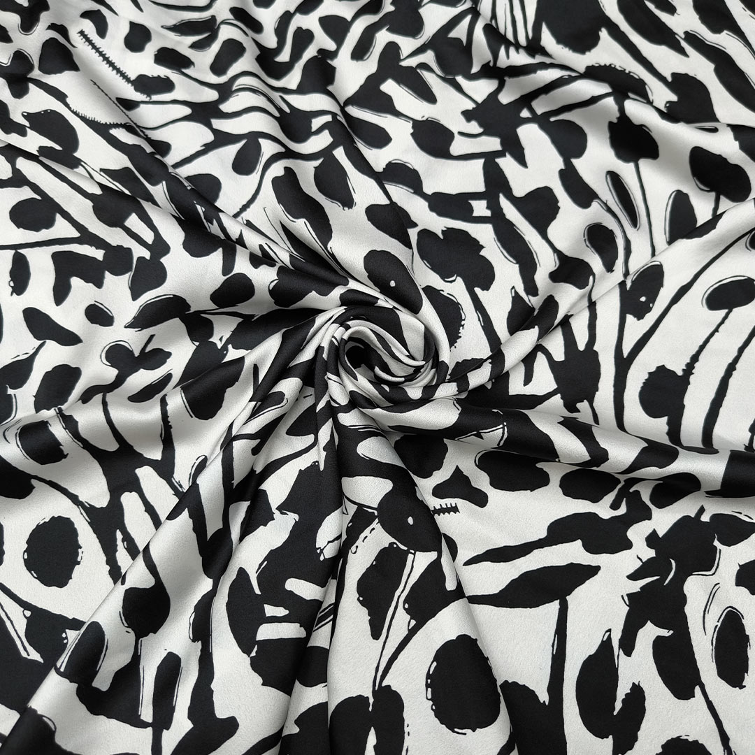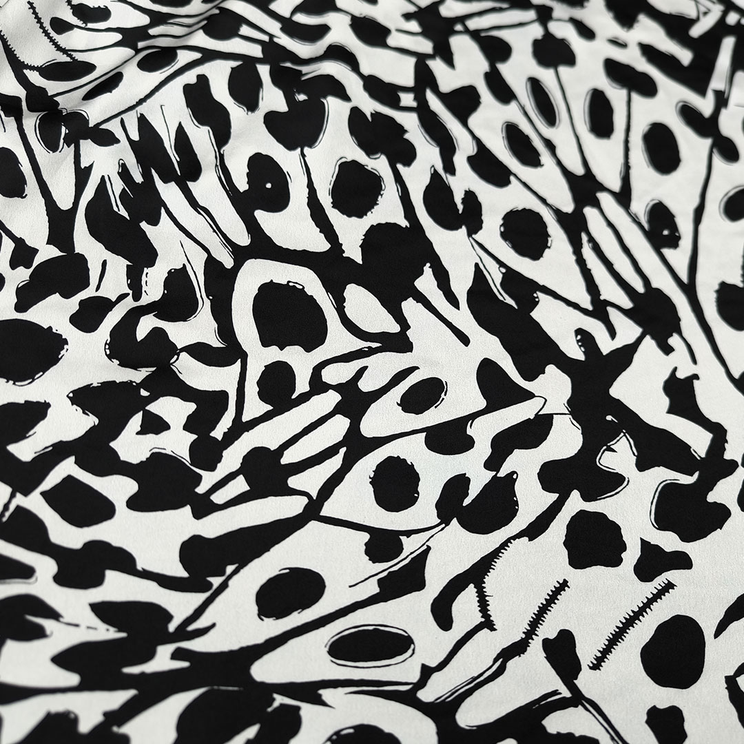 Tessuto Satin a fantasia motivo astratto bianco – nero