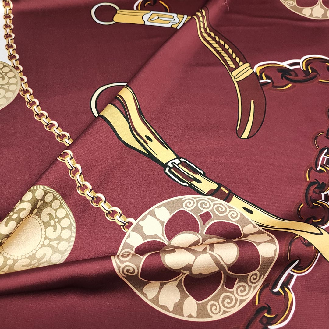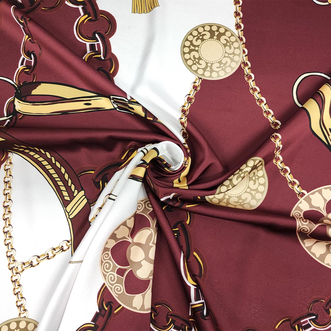 Tessuto Satin a fantasia motivo astratto bordeaux – oro – bianco