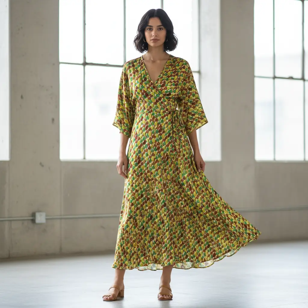 Tessuto Satin a fantasia motivo astratto cedro – verde – tabacco