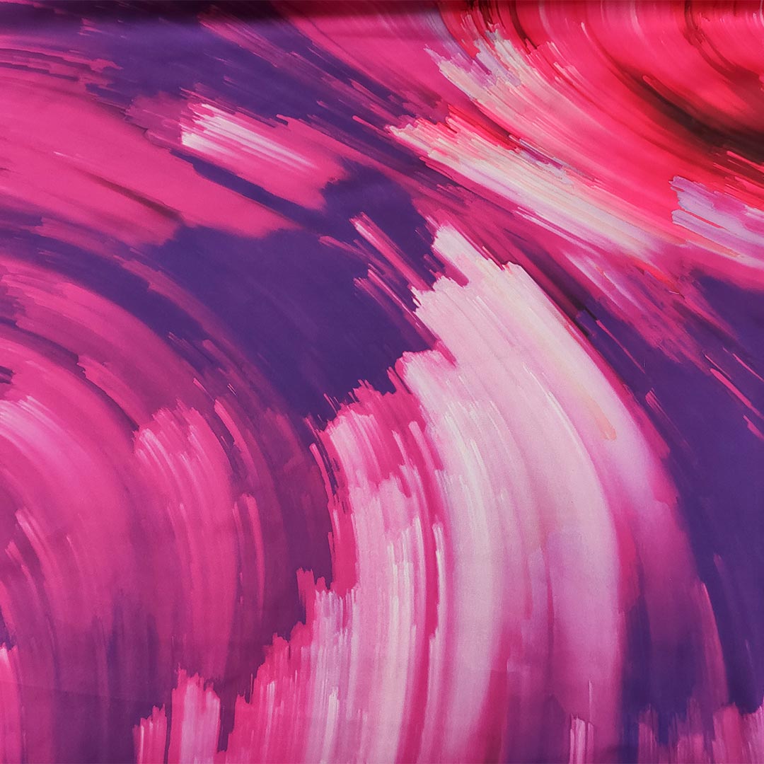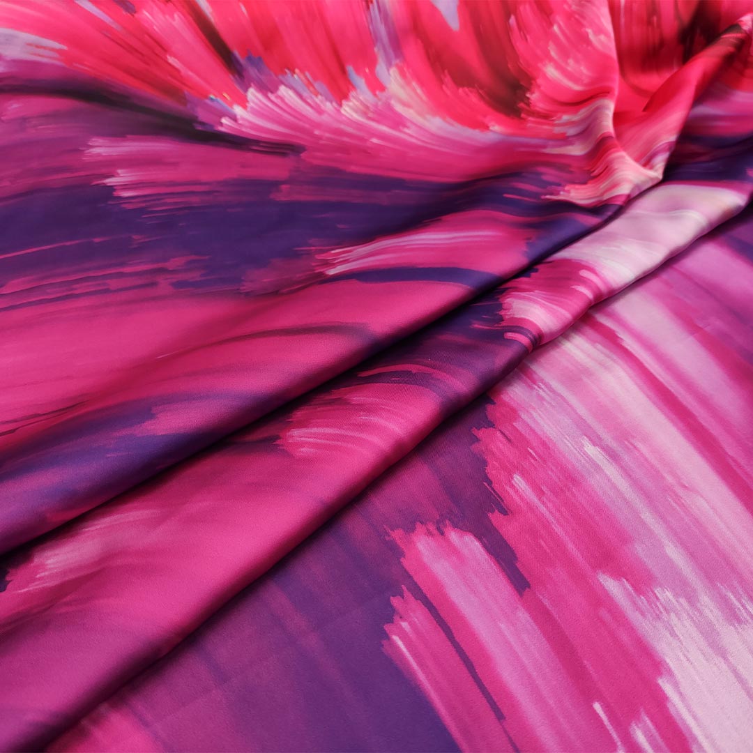 Tessuto Satin a fantasia motivo astratto fucsia – magenta – corallo