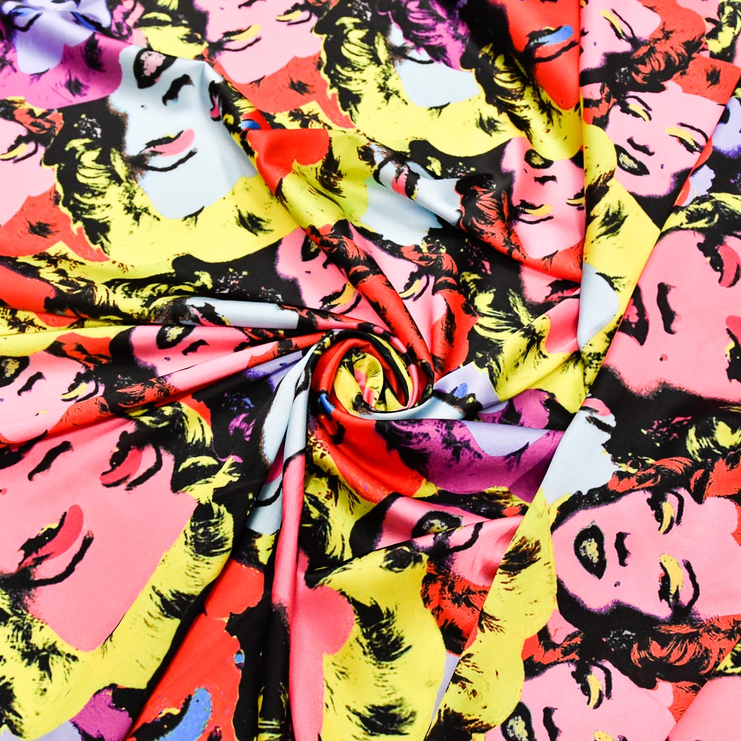 Tessuto Satin a fantasia motivo astratto fucsia – nero – giallo