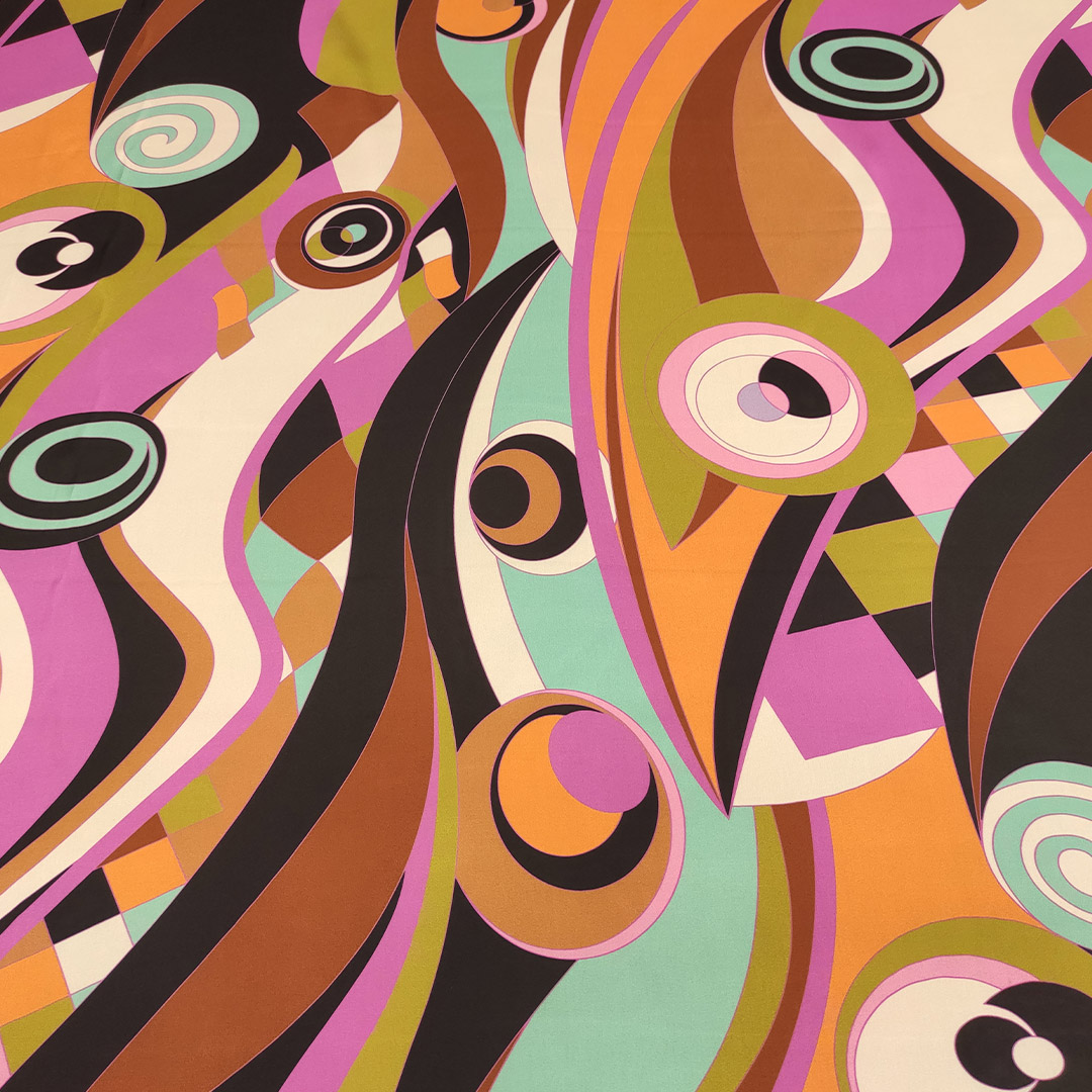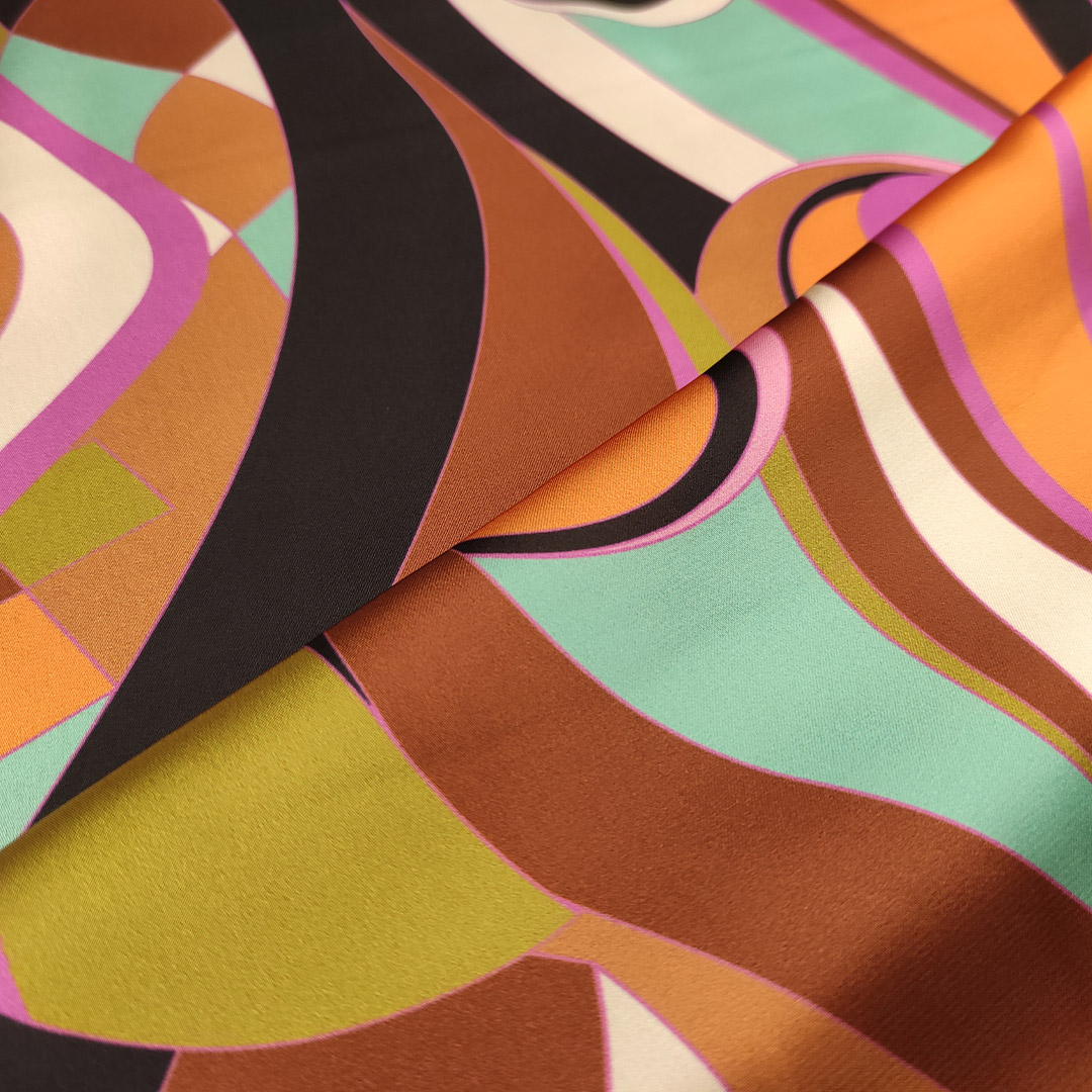 Tessuto Satin a fantasia motivo astratto fucsia – tiffany – panna – nero – verde