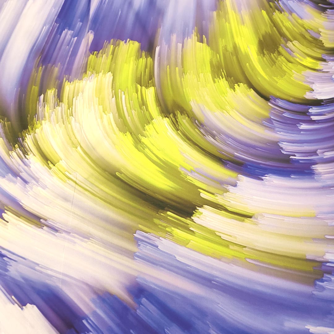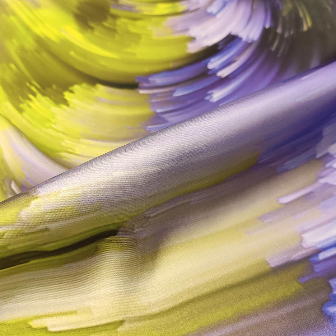 Tessuto Satin a fantasia motivo astratto lime – violet – indaco
