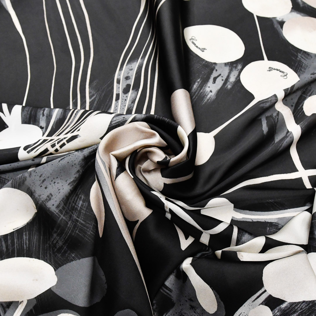Tessuto Satin a fantasia motivo astratto nero – beige – grigio