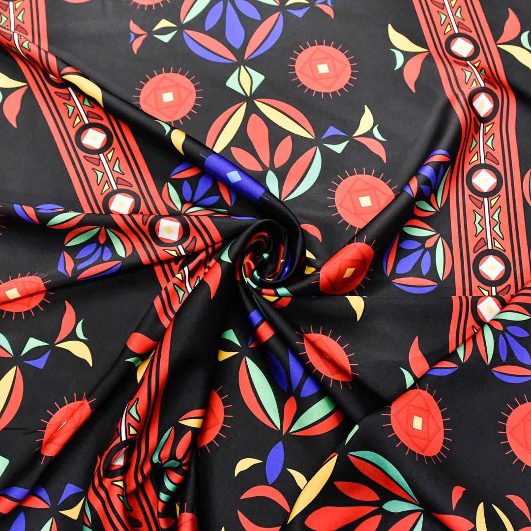 Tessuto Satin a fantasia dalla mano morbida, cadente e fluida, dall’aspetto semilucido si presta alla creazione di capi fluenti e morbidi da utilizzare in tutte le stagioni come: camicie, abiti, gonne, bluse, tute jumpsuit e pantaloni.