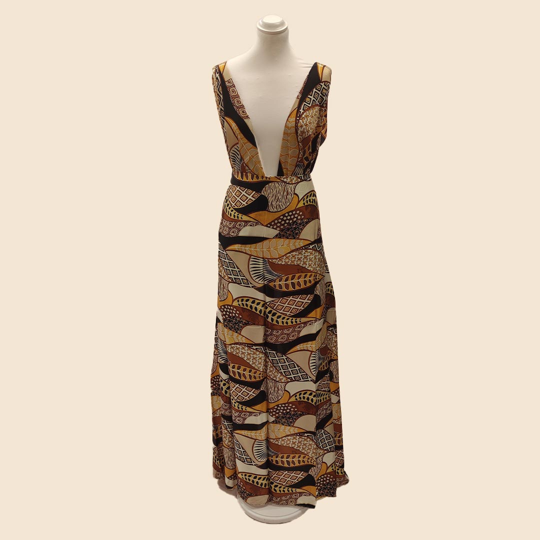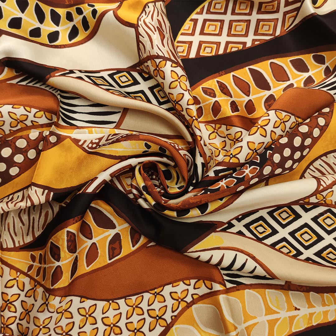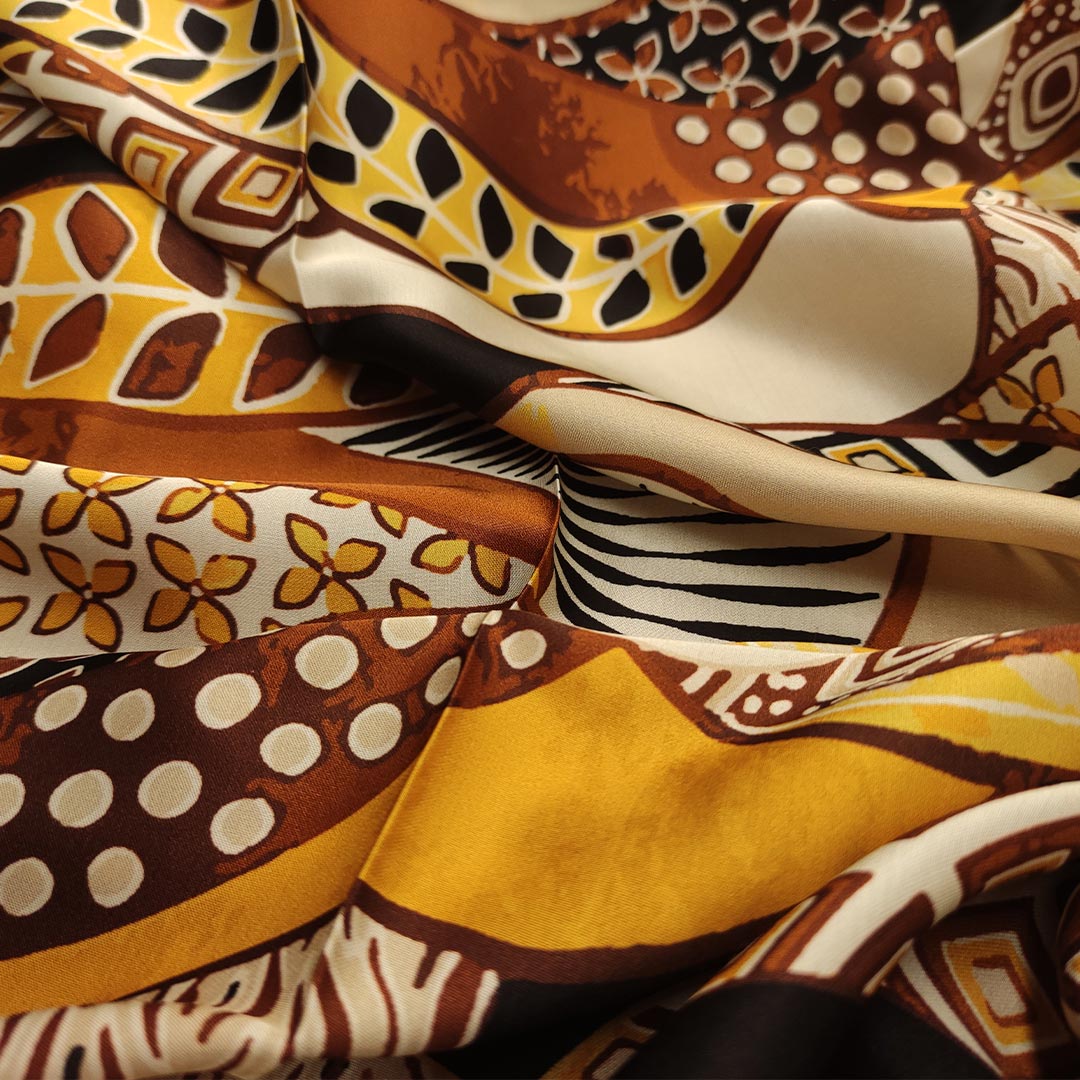 Tessuto Satin a fantasia motivo astratto ocra – nero – tabacco