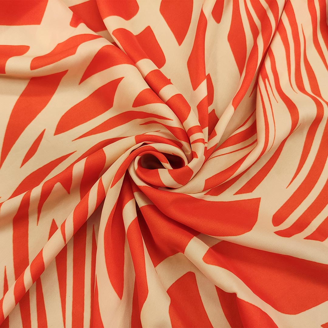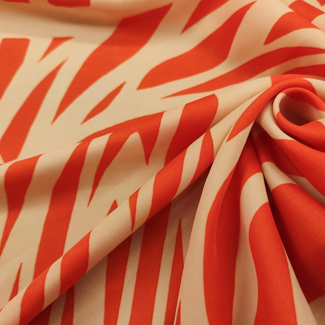 Tessuto Satin a fantasia motivo astratto panna – arancione