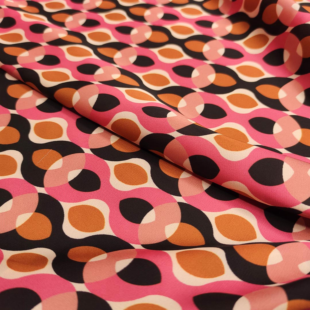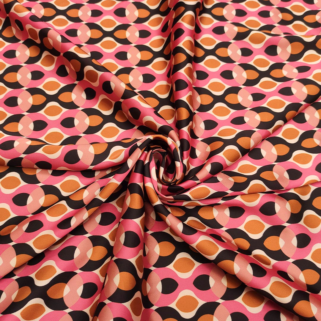 Tessuto Satin a fantasia motivo astratto rosa antico – nero – beige – tabacco