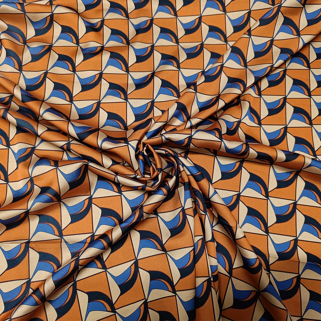 Tessuto Satin a fantasia dalla mano morbida, cadente e fluida, dall’aspetto semilucido si presta alla creazione di capi fluenti e morbidi da utilizzare in tutte le stagioni come: camicie, abiti, gonne, bluse, tute jumpsuit e pantaloni.