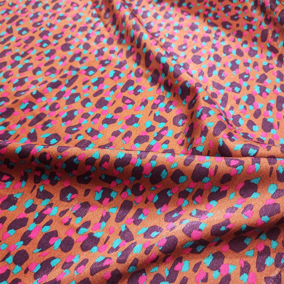 Tessuto Satin a fantasia dalla mano morbida, cadente e fluida, dall’aspetto semilucido si presta alla creazione di capi fluenti e morbidi da utilizzare in tutte le stagioni come: camicie, abiti, gonne, bluse, tute jumpsuit e pantaloni.
