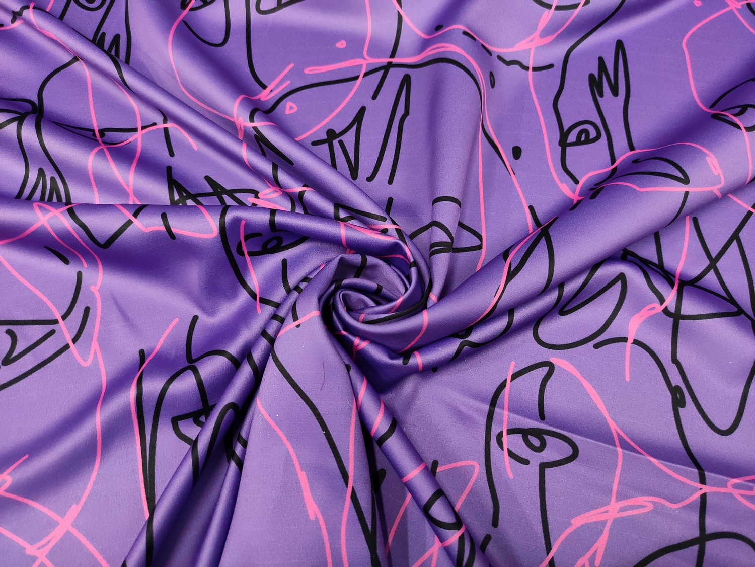 Tessuto Satin a fantasia motivo astratto viola – nero