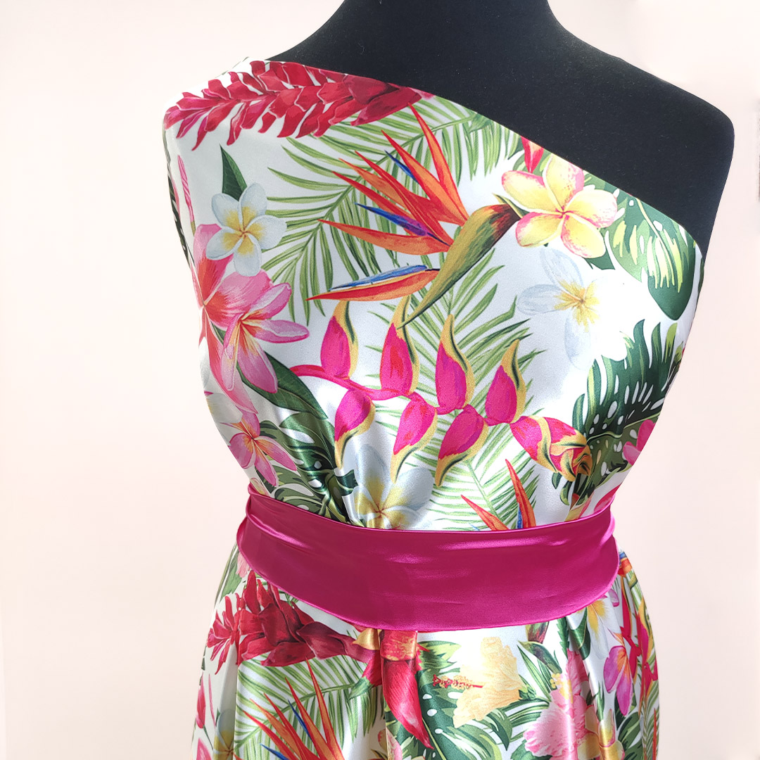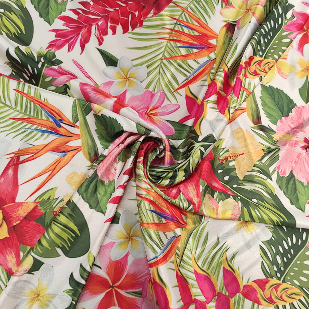 Tessuto Satin a fantasia dalla mano morbida, cadente e fluida, dall’aspetto semilucido si presta alla creazione di capi fluenti e morbidi da utilizzare in tutte le stagioni come: camicie, abiti, gonne, bluse, tute jumpsuit e pantaloni. Selezione Iaia Collection