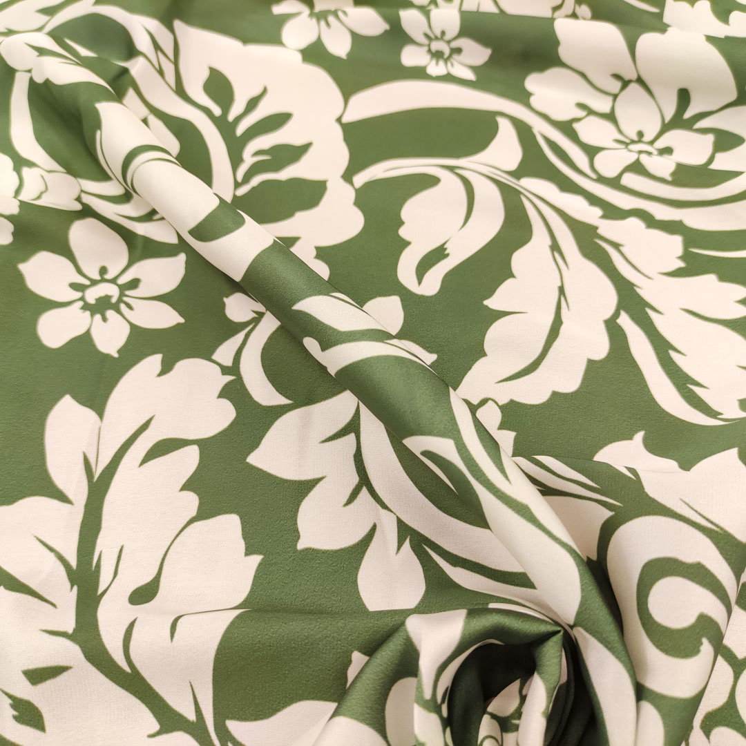 Tessuto Satin a fantasia motivo floreale bianco – verde