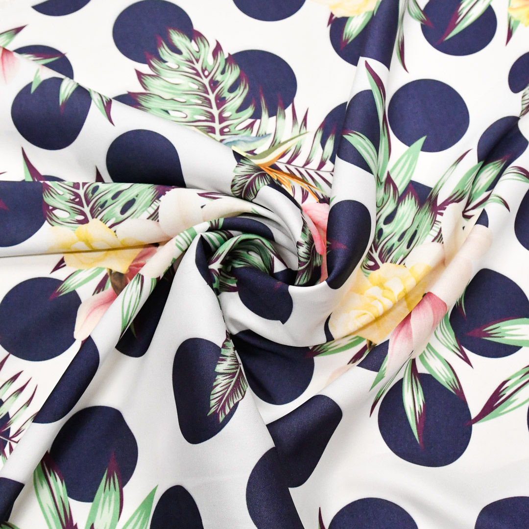 Tessuto Satin a fantasia dalla mano morbida, cadente e fluida, dall’aspetto semilucido si presta alla creazione di capi fluenti e morbidi da utilizzare in tutte le stagioni come: camicie, abiti, gonne, bluse, tute jumpsuit e pantaloni.