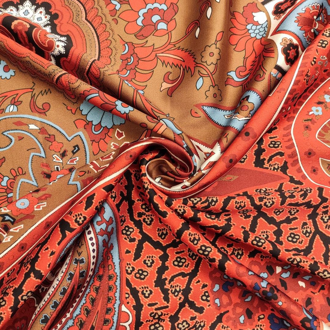 Tessuto Satin a fantasia dalla mano morbida, cadente e fluida, dall’aspetto semilucido si presta alla creazione di capi fluenti e morbidi da utilizzare in tutte le stagioni come: camicie, abiti, gonne, bluse, tute jumpsuit e pantaloni.
