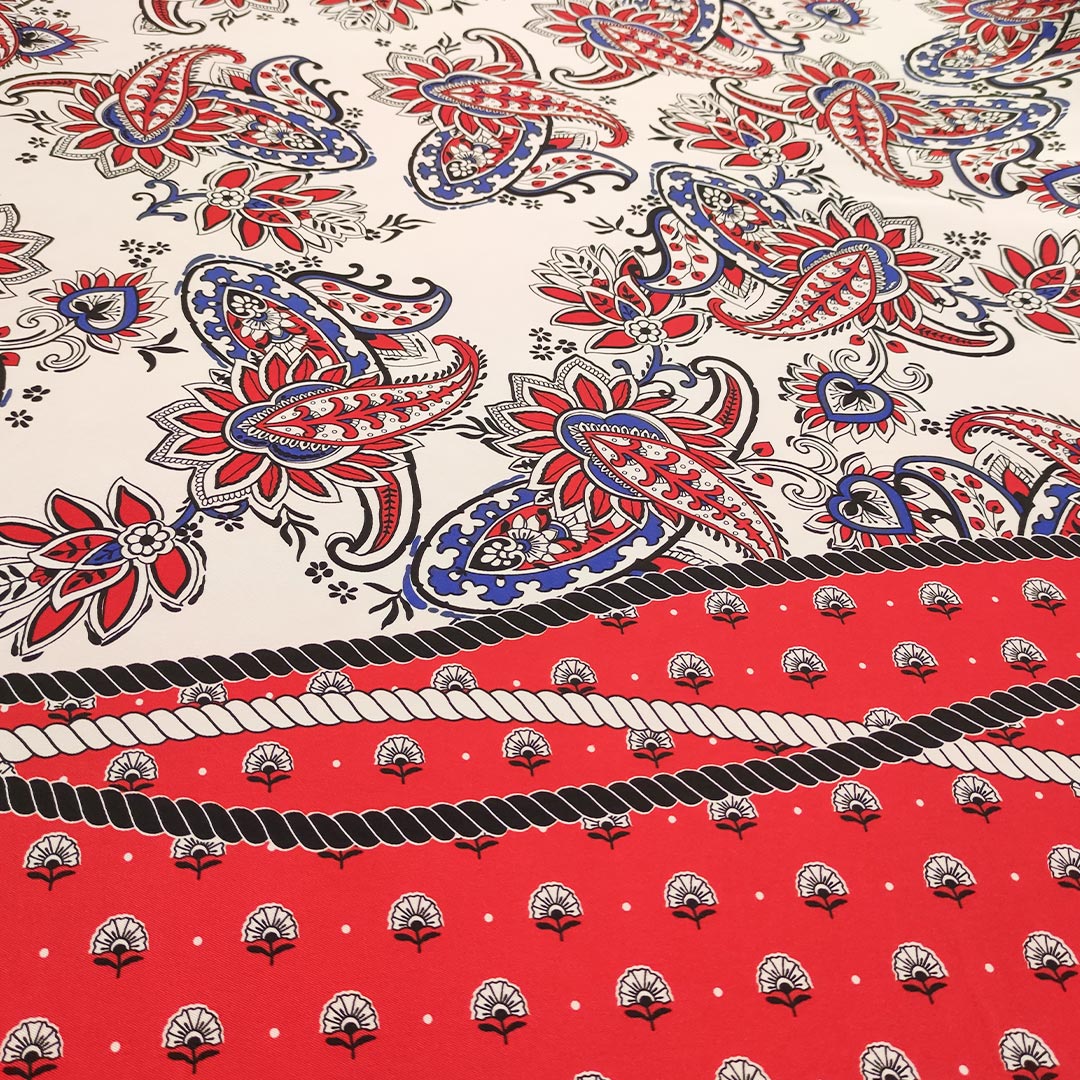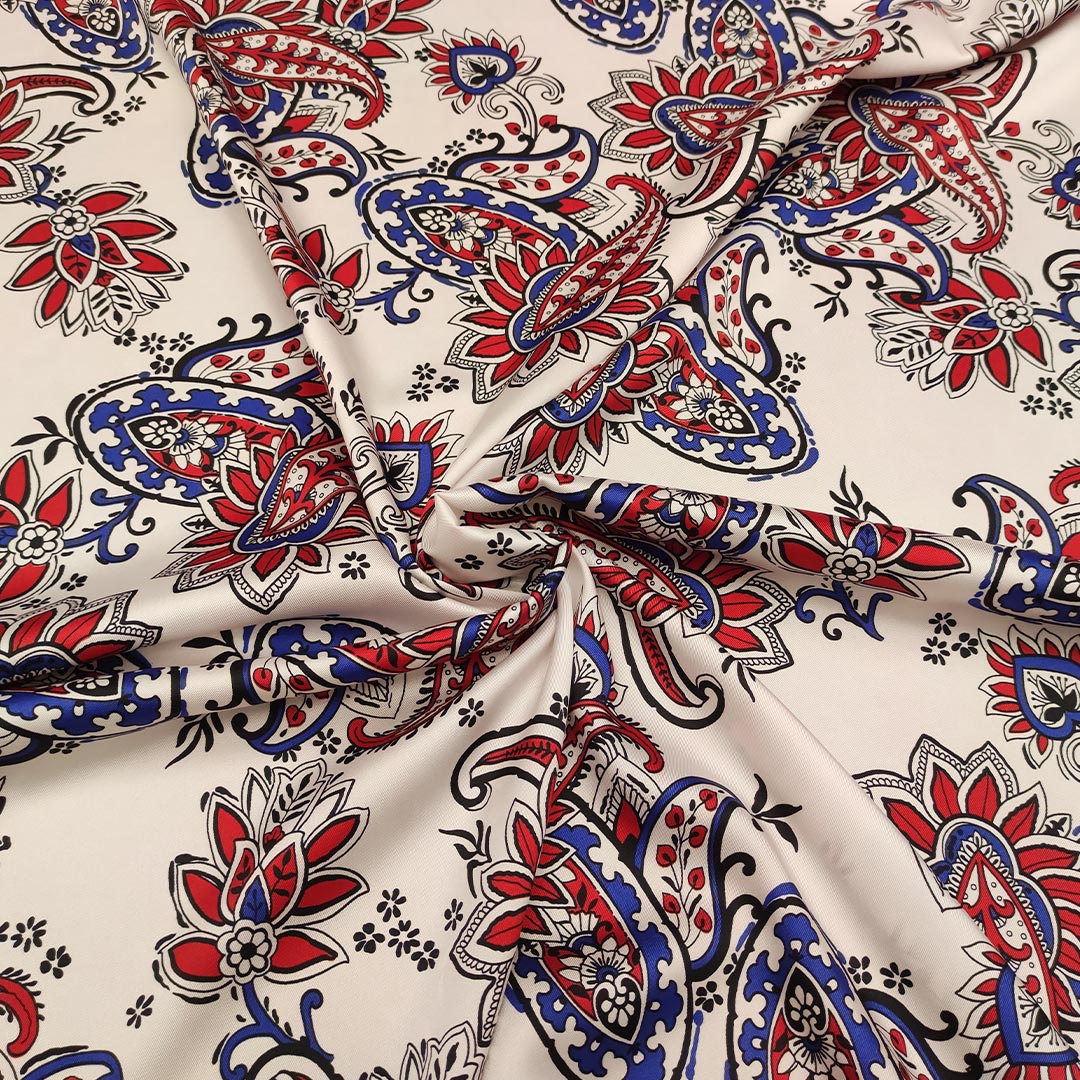 Tessuto Satin a fantasia motivo floreale cashmere blu royale – rosso – bianco