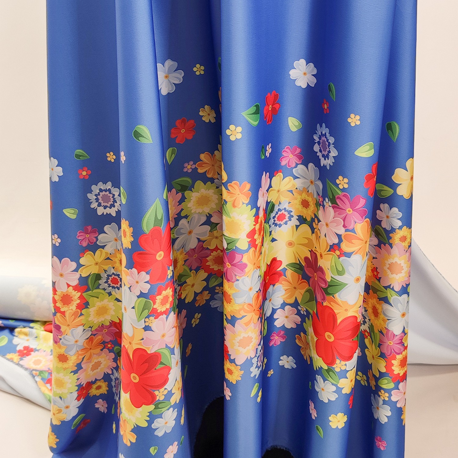 Tessuto Satin a fantasia dalla mano morbida, cadente e fluida, dall’aspetto semilucido si presta alla creazione di capi fluenti e morbidi da utilizzare in tutte le stagioni come: camicie, abiti, gonne, bluse, tute jumpsuit e pantaloni. Altezza Balza Fiori 65 cm. Selezione Iaia Collection