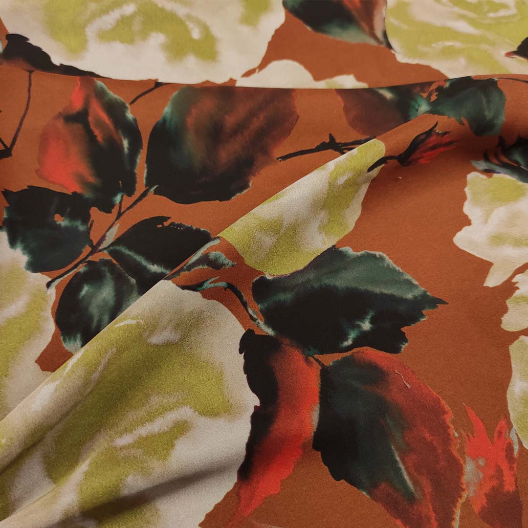 Tessuto Satin a fantasia dalla mano morbida, cadente e fluida, dall’aspetto semilucido si presta alla creazione di capi fluenti e morbidi da utilizzare in tutte le stagioni come: camicie, abiti, gonne, bluse, tute jumpsuit e pantaloni.