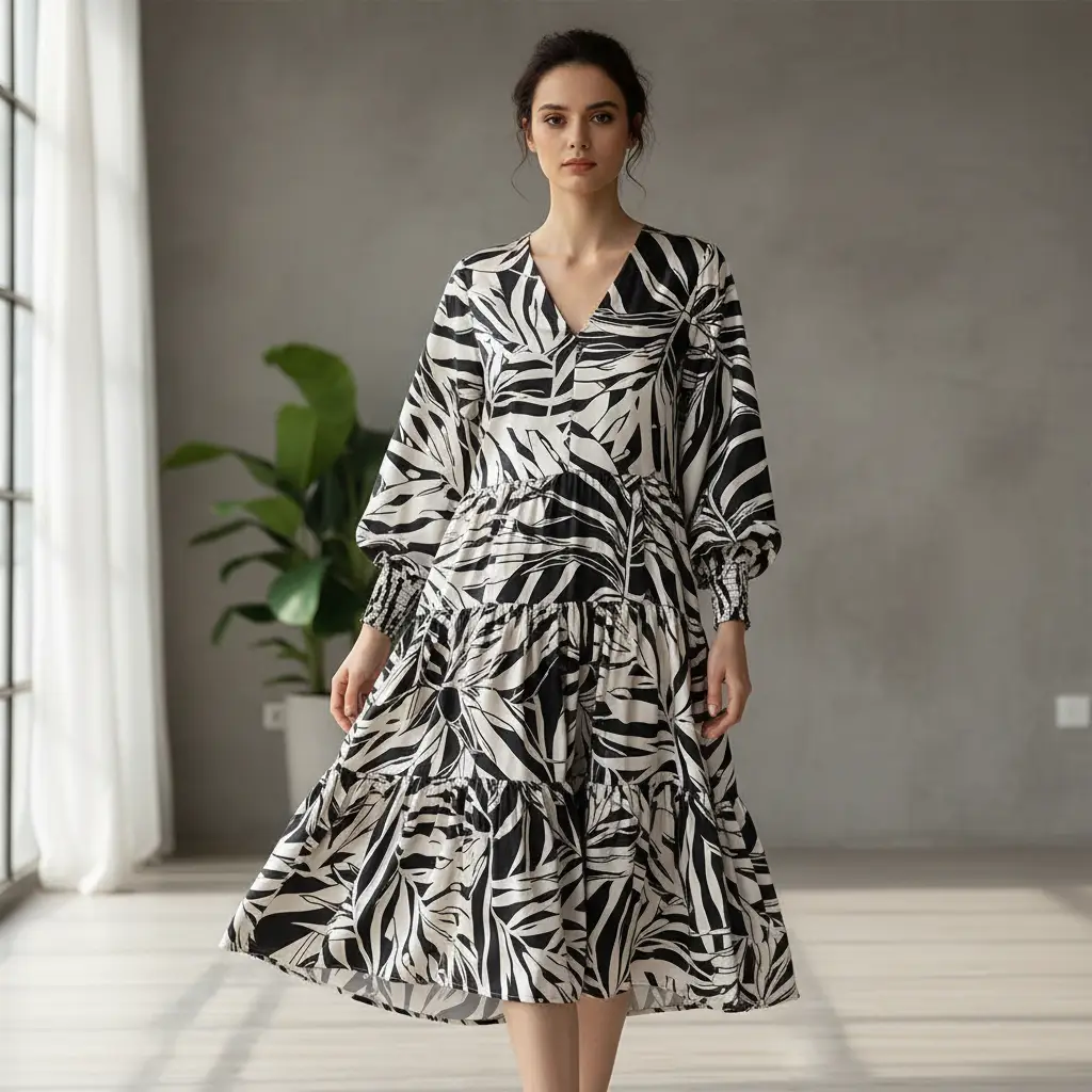 Tessuto Satin a fantasia dalla mano morbida, cadente e fluida, dall’aspetto semilucido si presta alla creazione di capi fluenti e morbidi da utilizzare in tutte le stagioni come: camicie, abiti, gonne, bluse, tute jumpsuit e pantaloni.