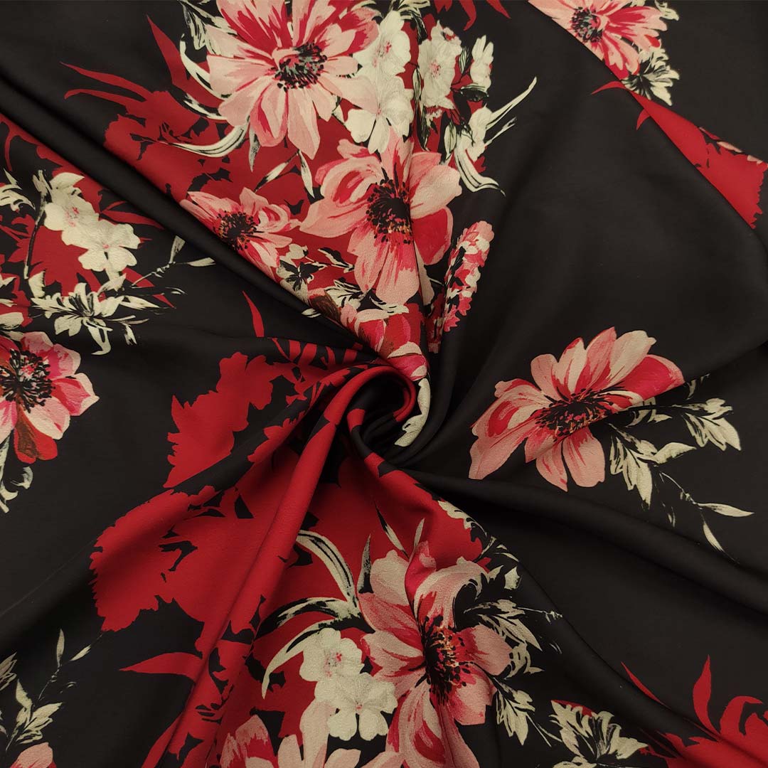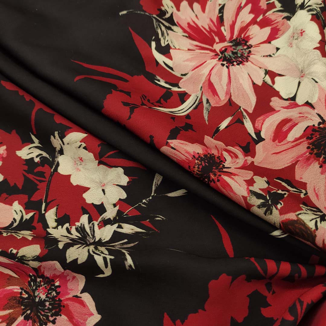 Tessuto Satin a fantasia motivo floreale nero – bordeaux – tortora