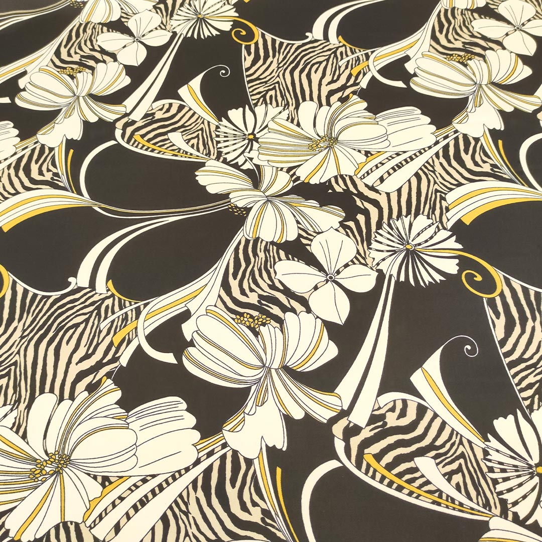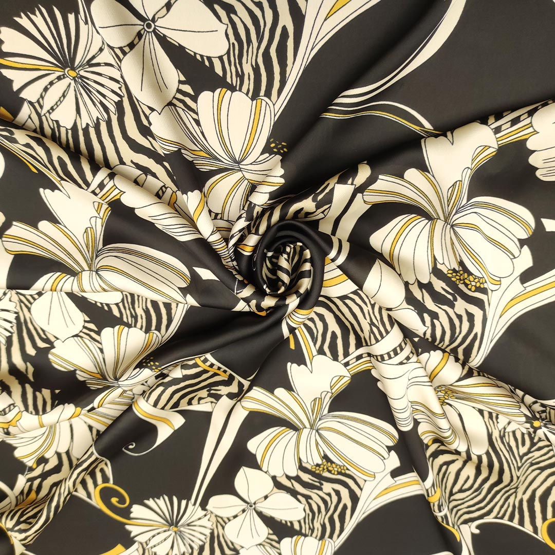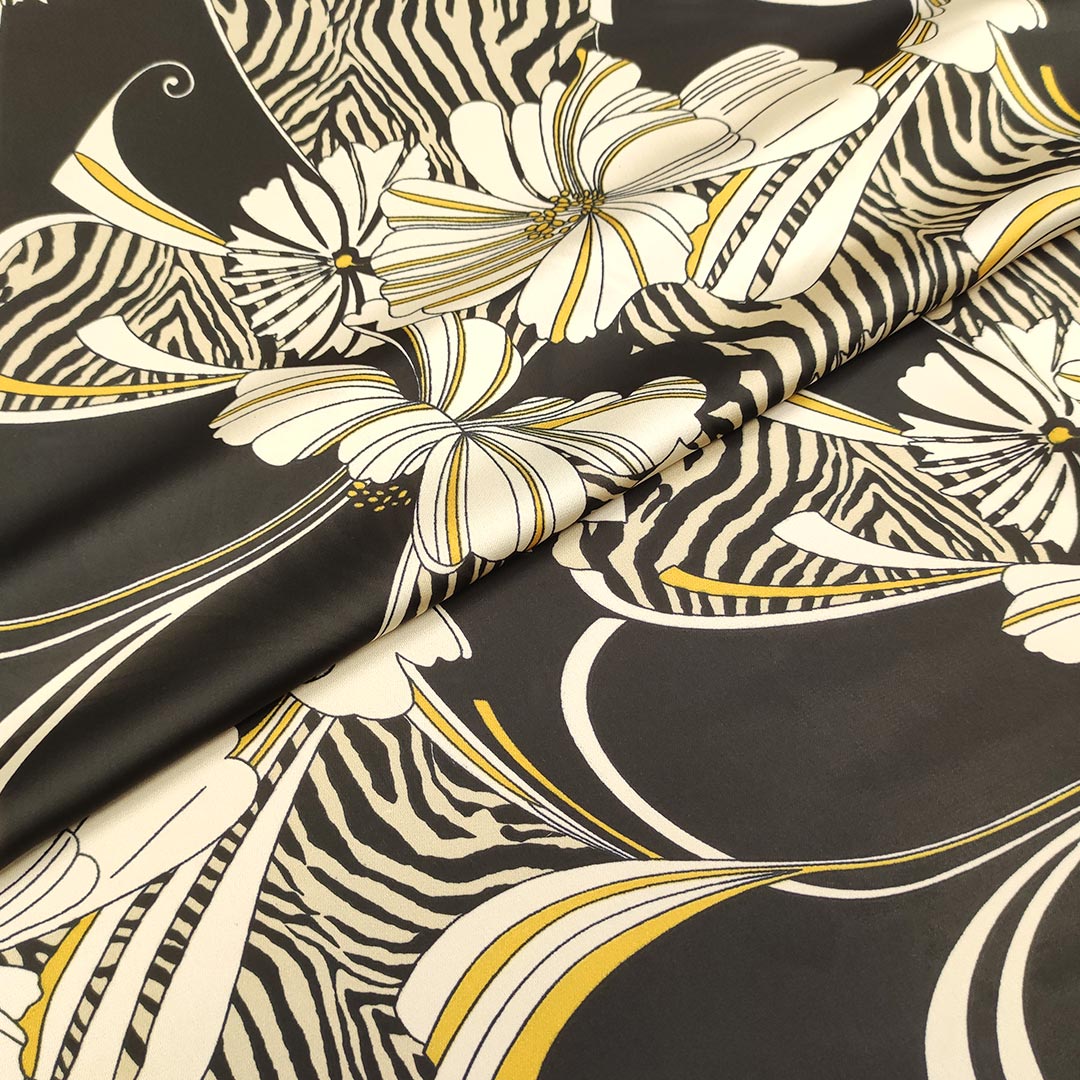 Tessuto Satin a fantasia motivo floreale nero – panna – ocra