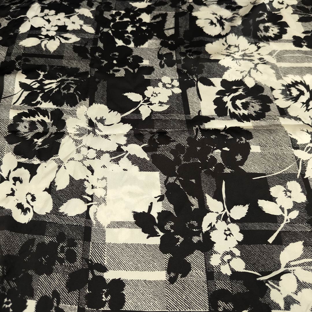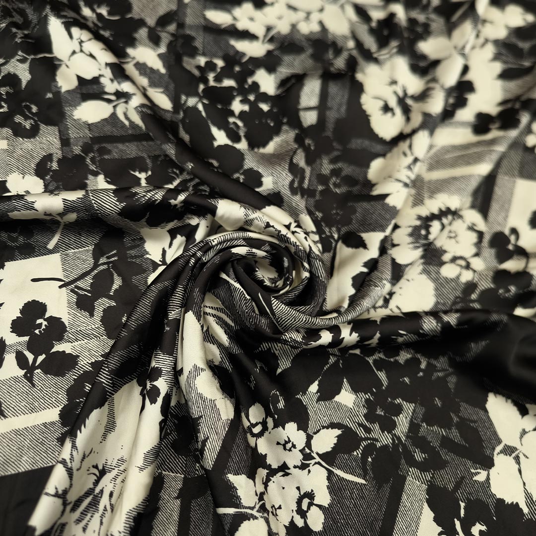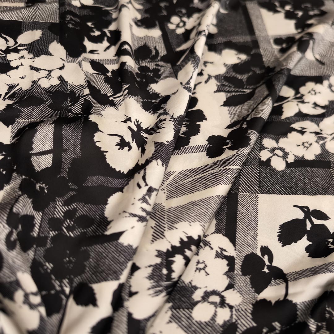 Tessuto Satin a fantasia motivo floreale panna – nero – grigio