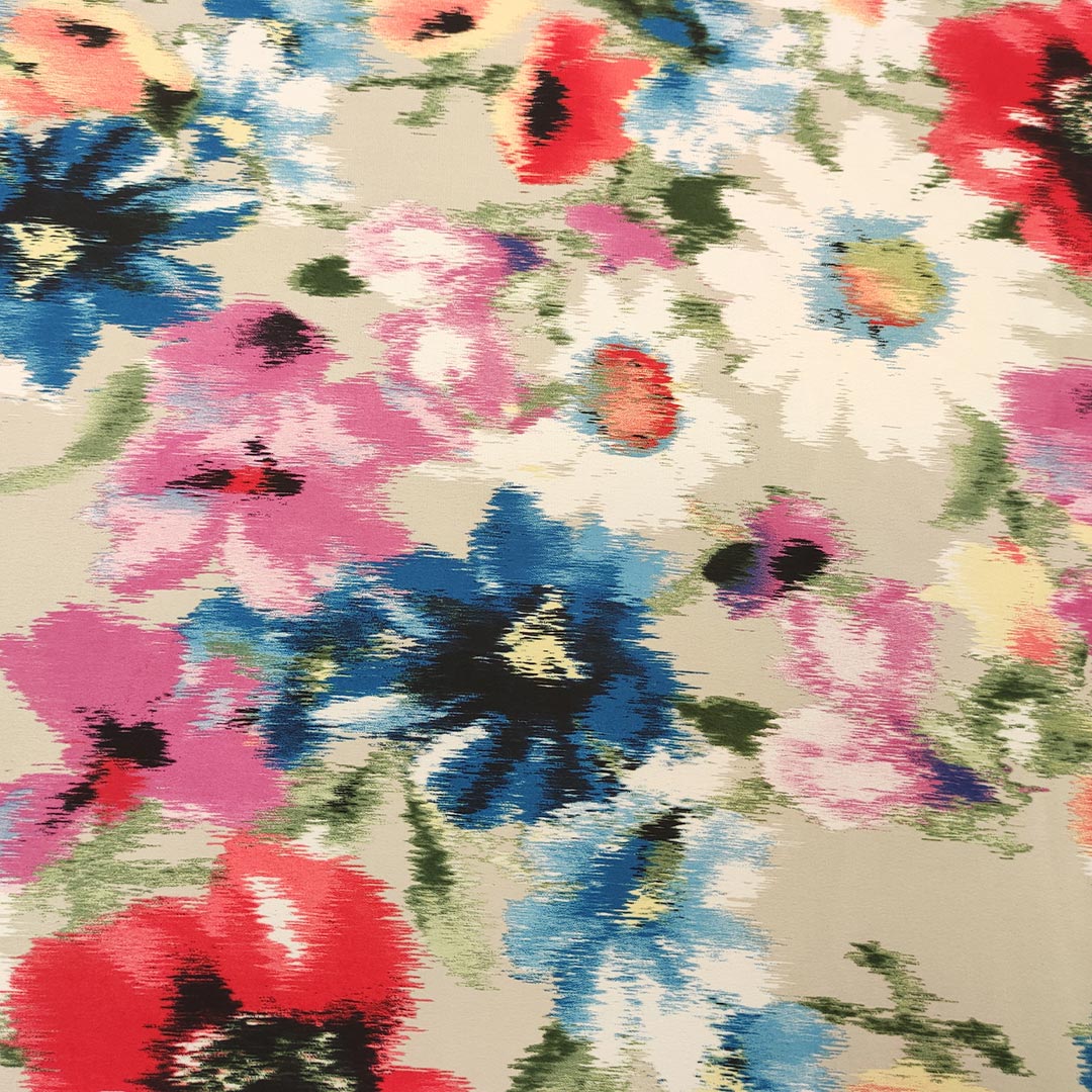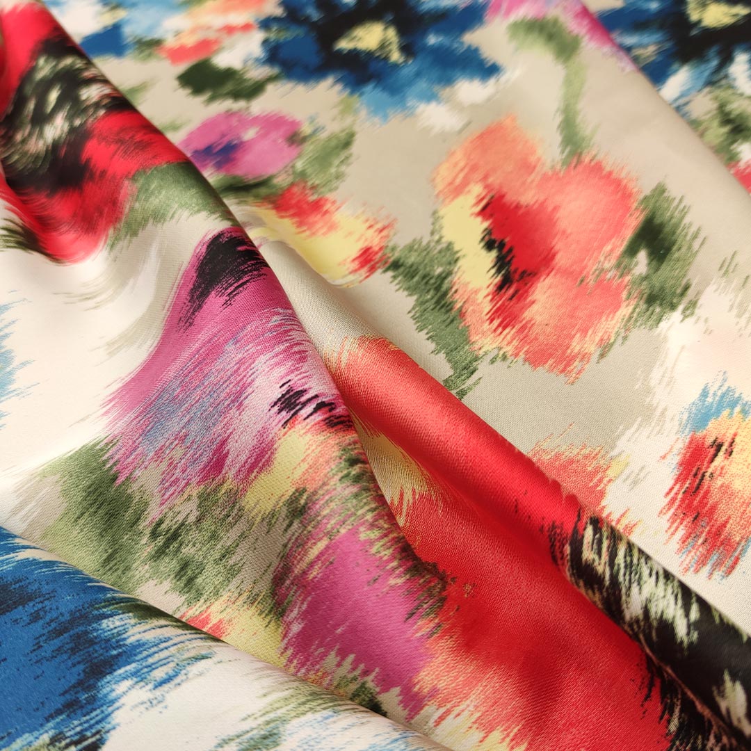 Tessuto Satin a fantasia motivo floreale rosso – fucsia – bianco – blu navy – nero – verde – beige