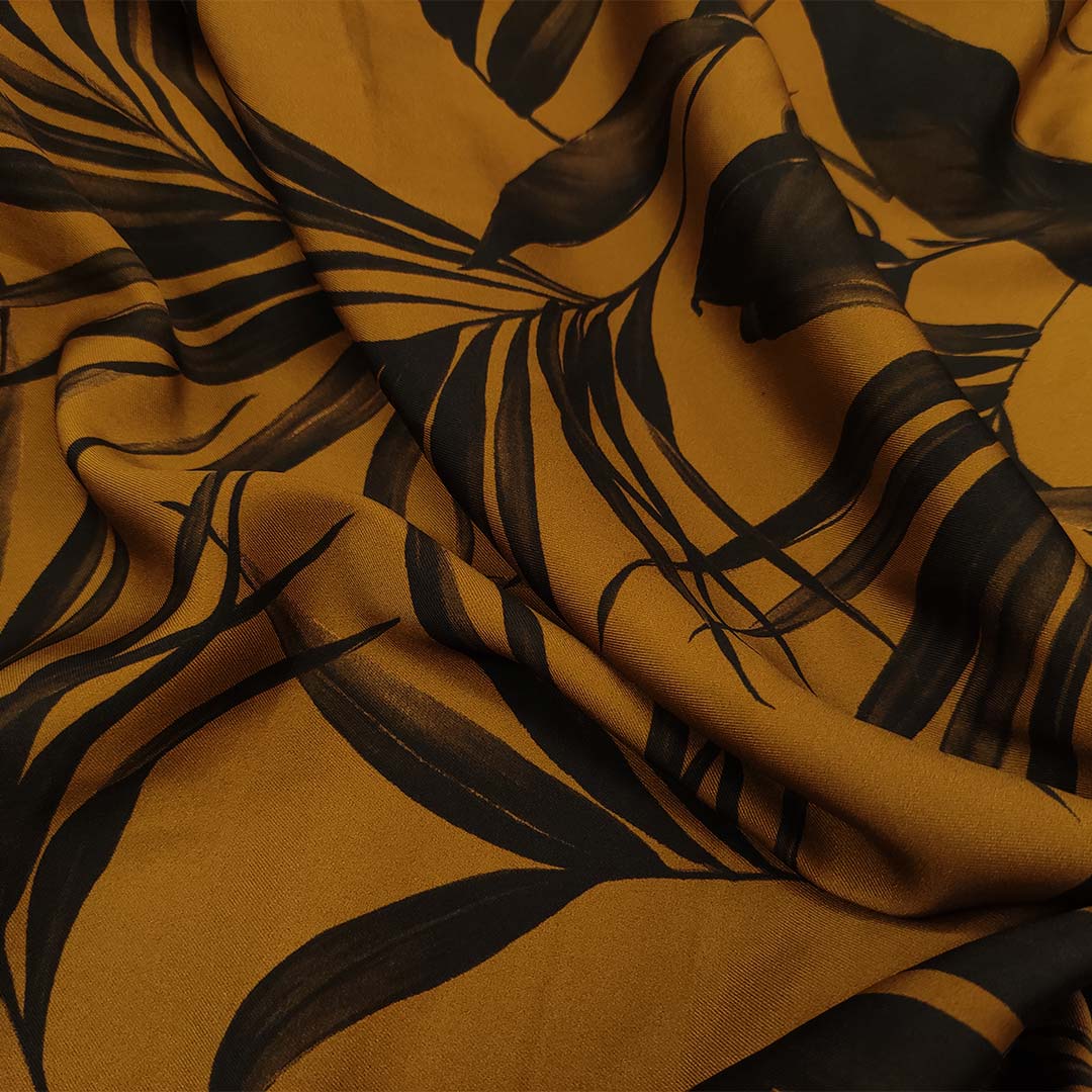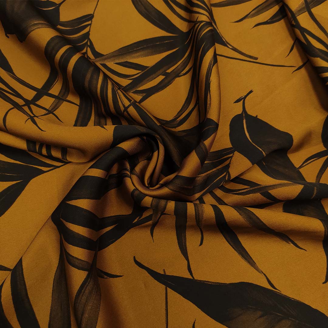 Tessuto Satin a fantasia motivo floreale senape – marrone