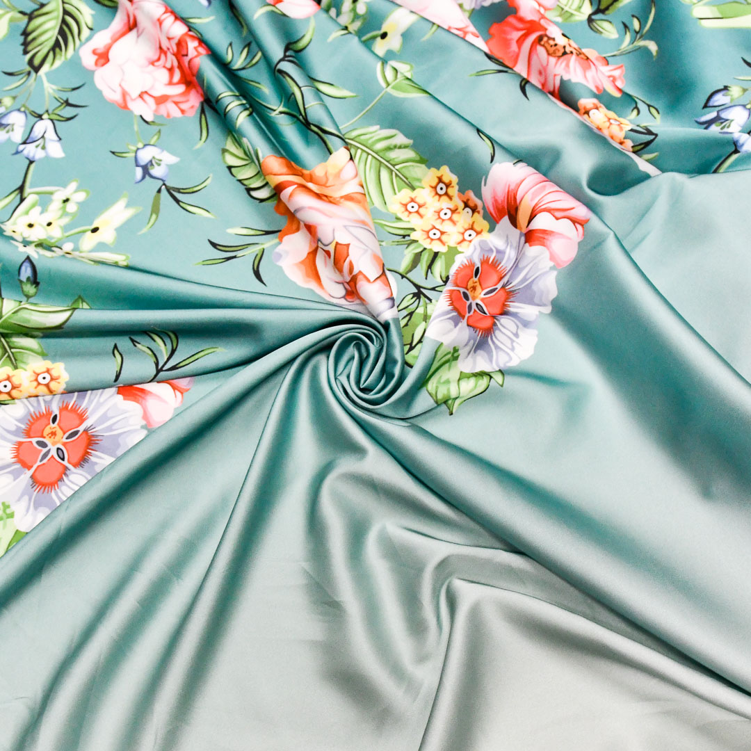 Tessuto Satin a fantasia dalla mano morbida, cadente e fluida, dall’aspetto semilucido si presta alla creazione di capi fluenti e morbidi da utilizzare in tutte le stagioni come: camicie, abiti, gonne, bluse, tute jumpsuit e pantaloni. Altezza balza fiori 65 cm