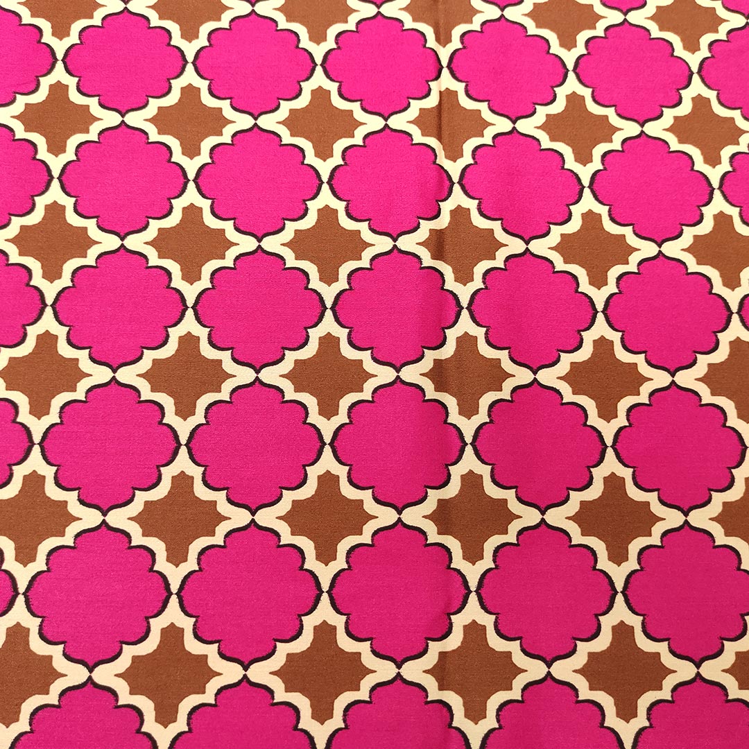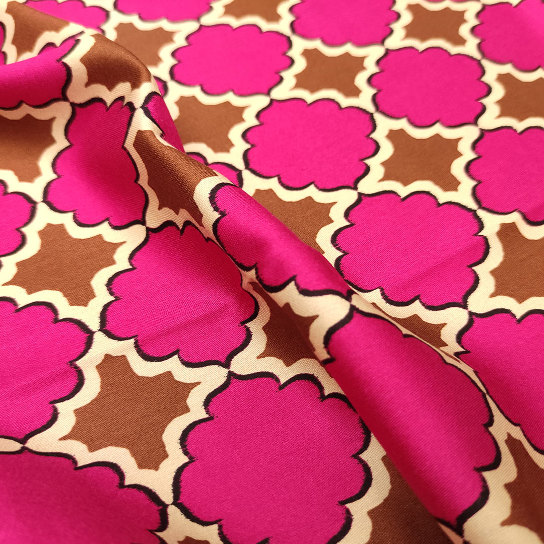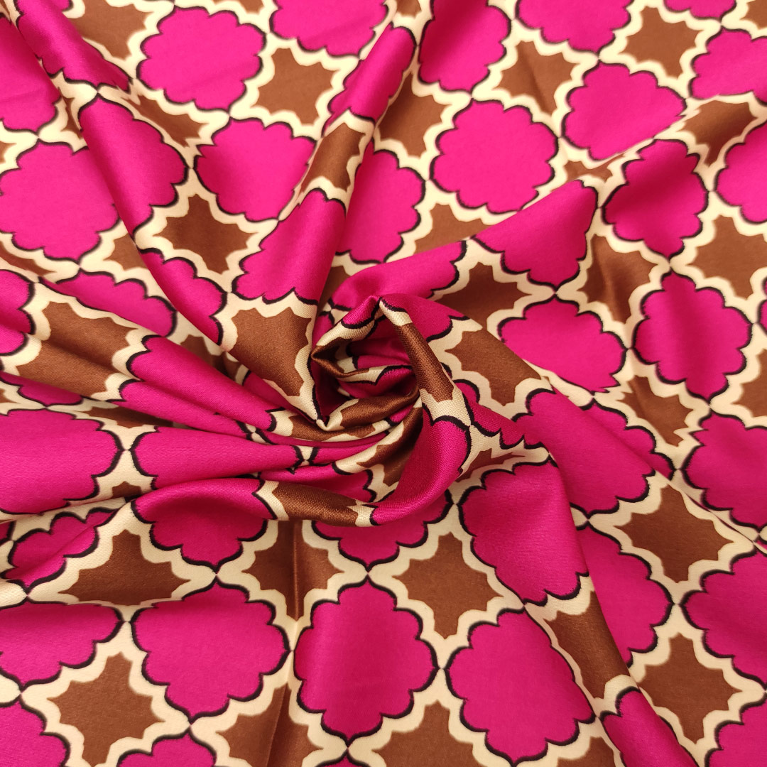 Tessuto Satin a fantasia motivo geometrico fucsia – marrone – beige