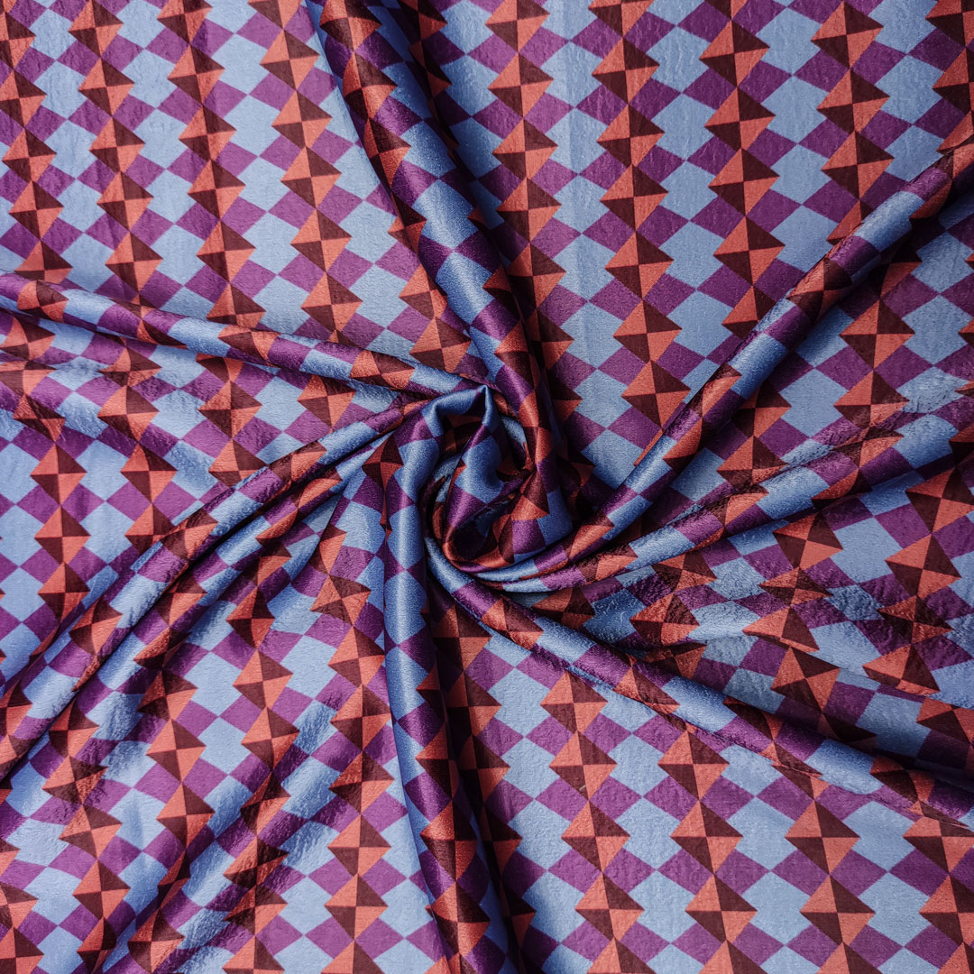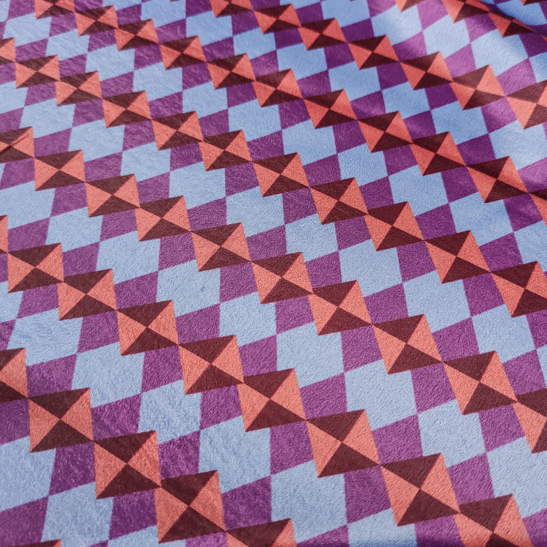Tessuto Satin a fantasia motivo geometrico ruggine – carta da zucchero – viola