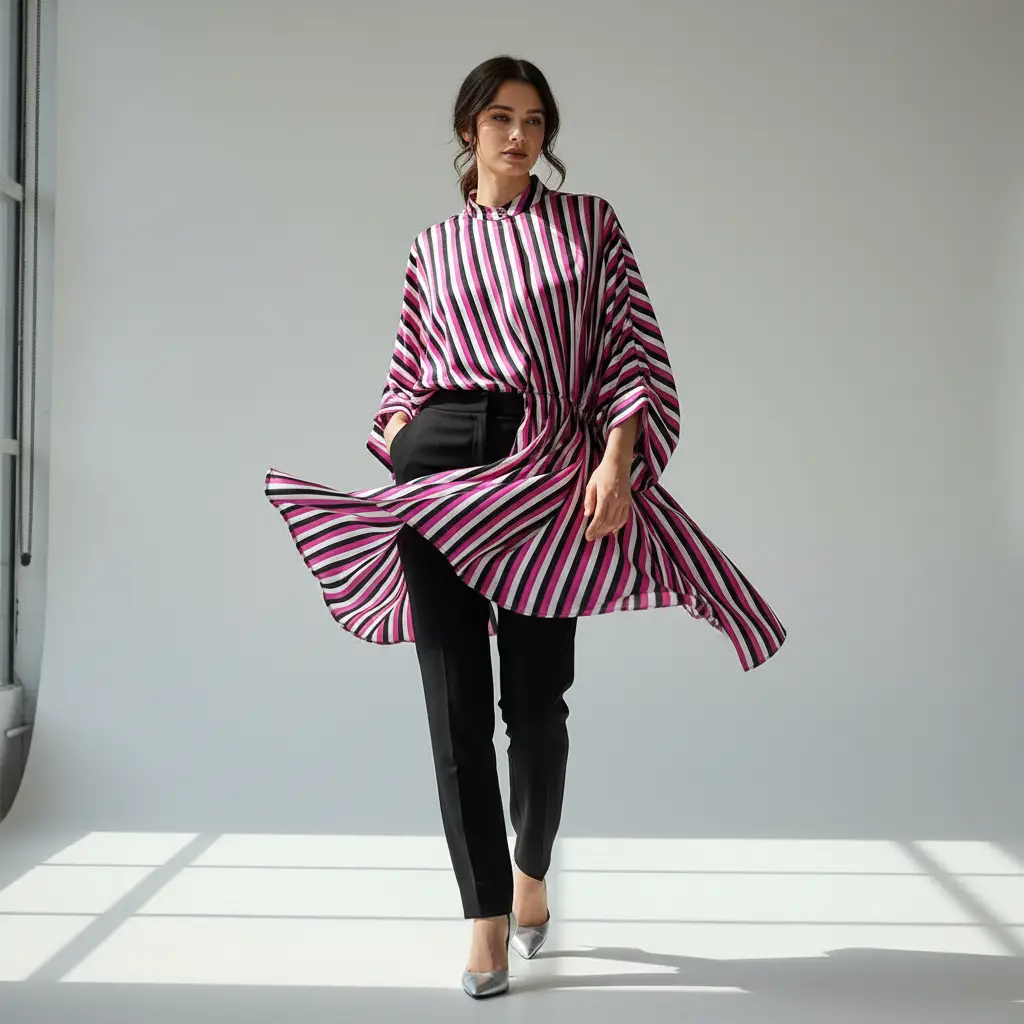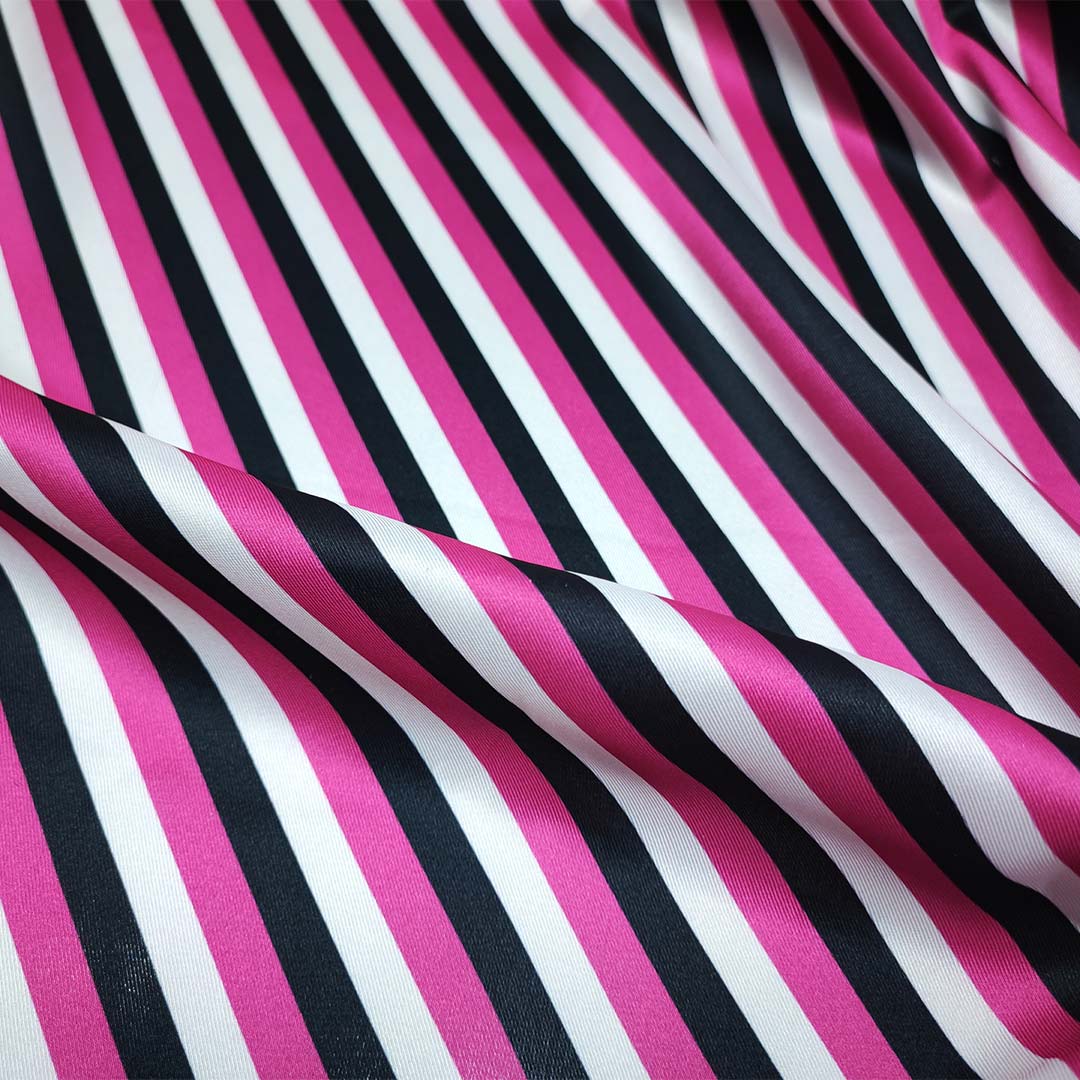 Tessuto Satin a fantasia motivo rigato nero – bianco – fucsia