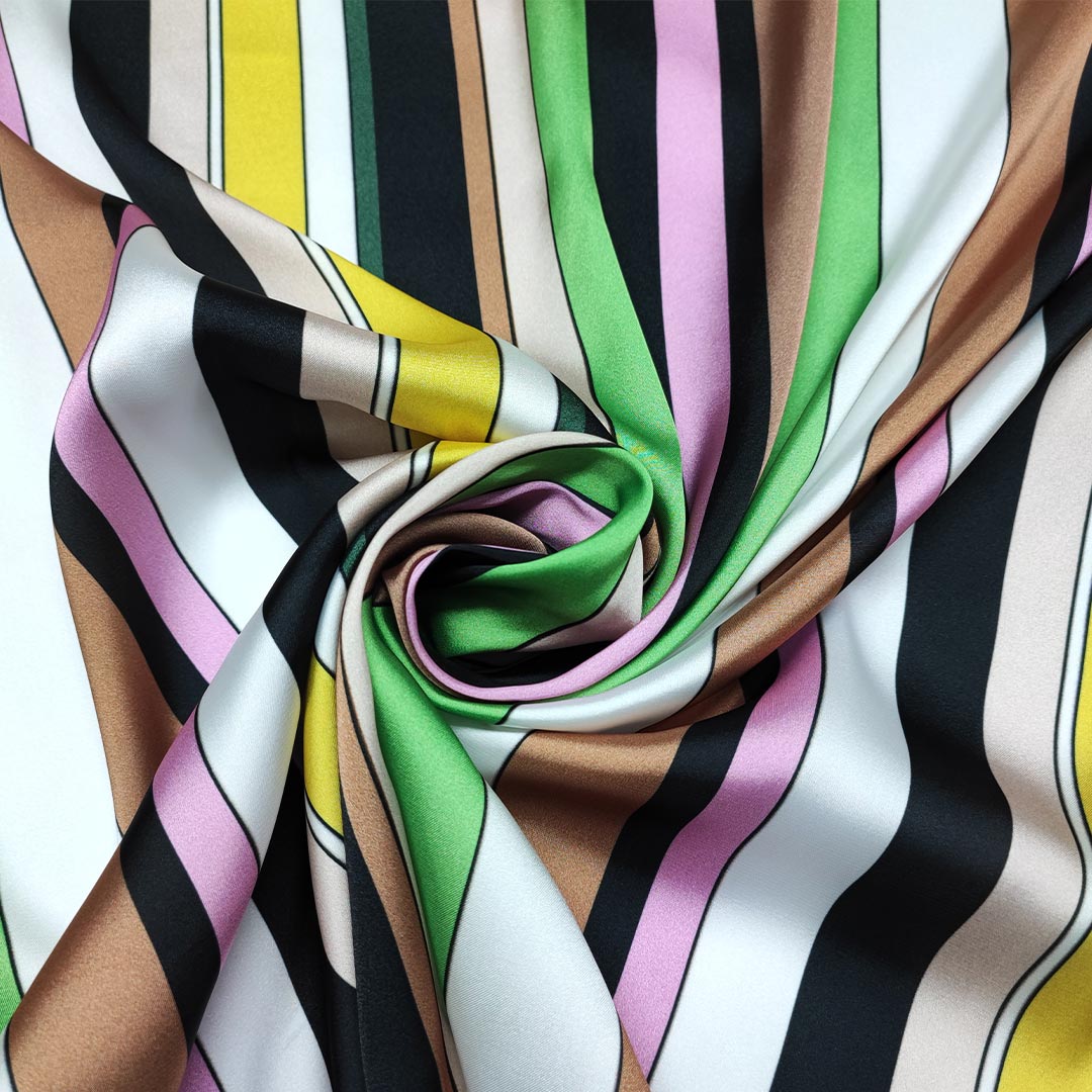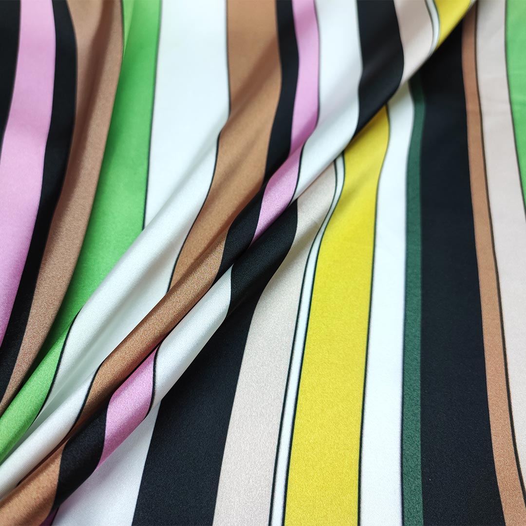 Tessuto Satin a fantasia dalla mano morbida, cadente e fluida, dall’aspetto semilucido si presta alla creazione di capi fluenti e morbidi da utilizzare in tutte le stagioni come: camicie, abiti, gonne, bluse, tute jumpsuit e pantaloni.