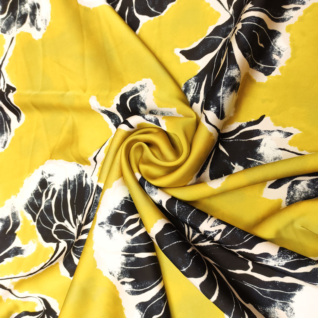 Tessuto Satin a fantasia dalla mano morbida, cadente e fluida, dall’aspetto semilucido si presta alla creazione di capi fluenti e morbidi da utilizzare in tutte le stagioni come: camicie, abiti, gonne, bluse, tute jumpsuit e pantaloni.