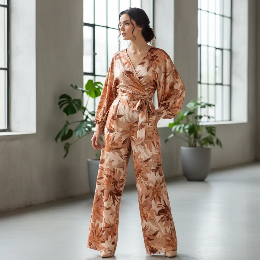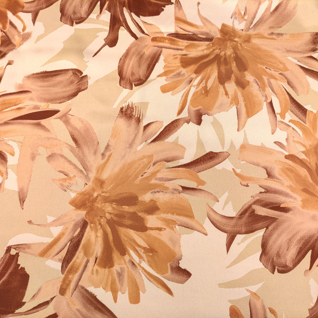 Tessuto Satin elasticizzato a fantasia motivo floreale pesco – ruggine – cipria