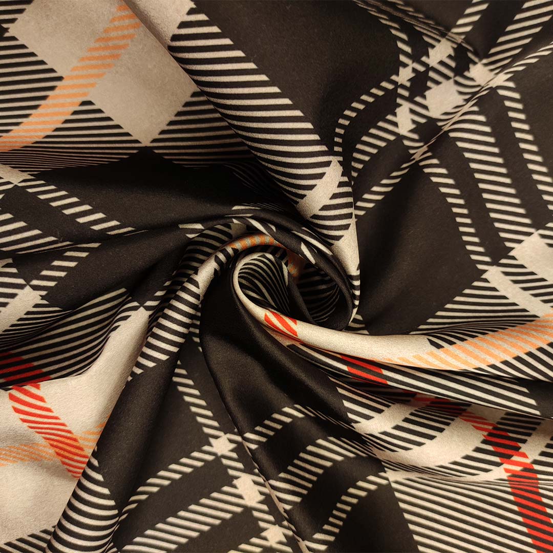 Tessuto Satin elasticizzato a fantasia quadri nero – beige – arancio