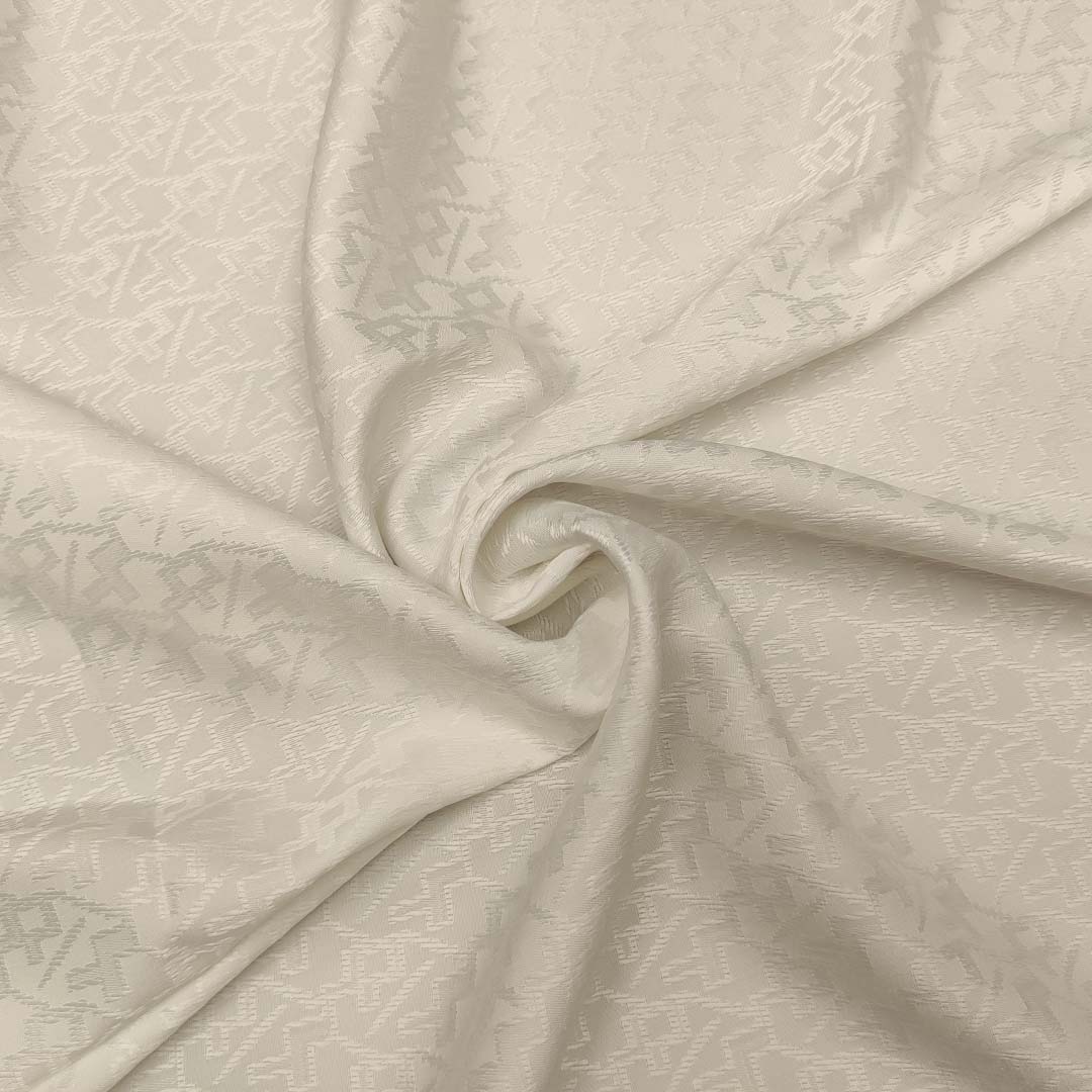 Tessuto Satin Jacquard motivo geometrico tinta unita bianco seta