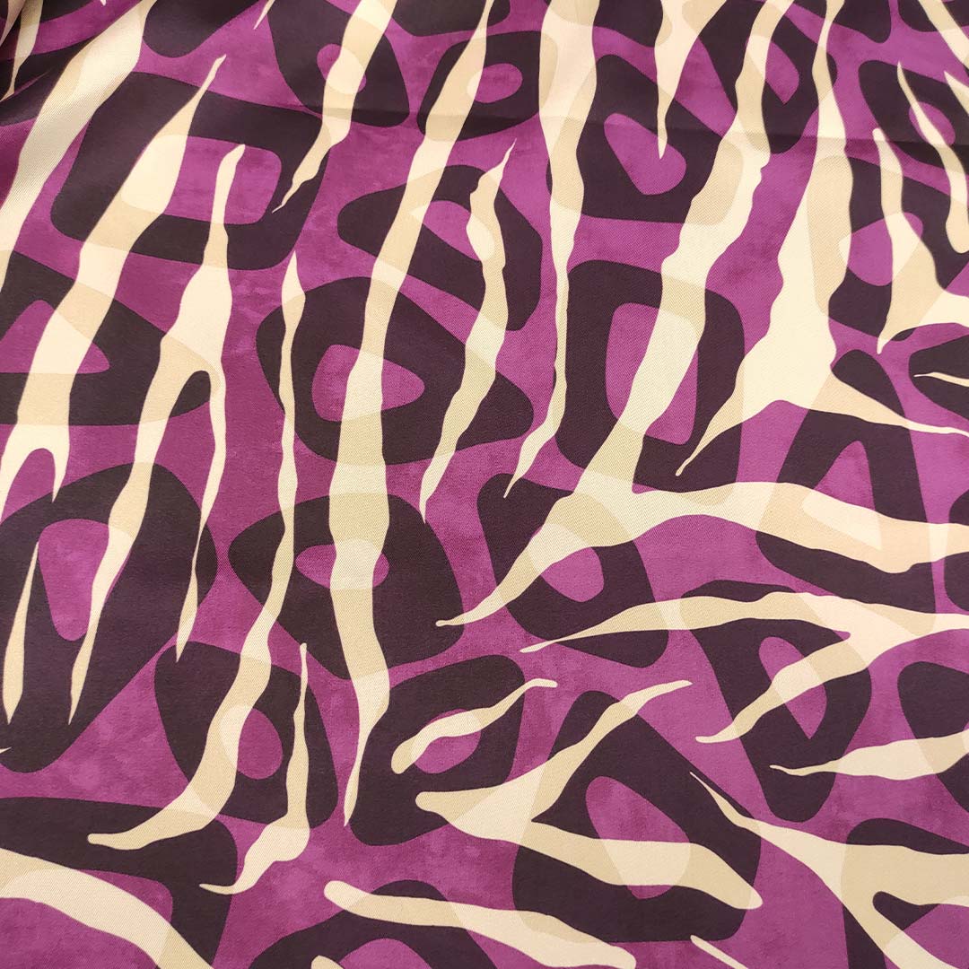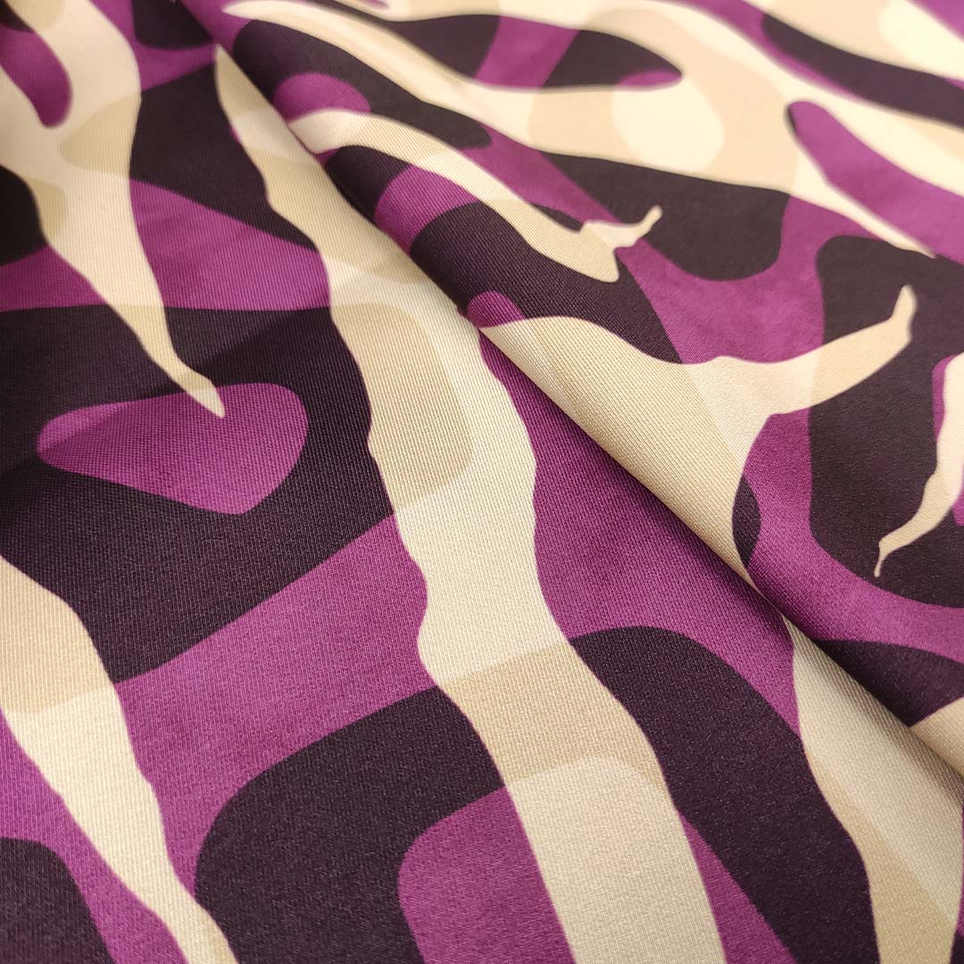 Tessuto Twill a fantasia motivo animalier viola – panna
