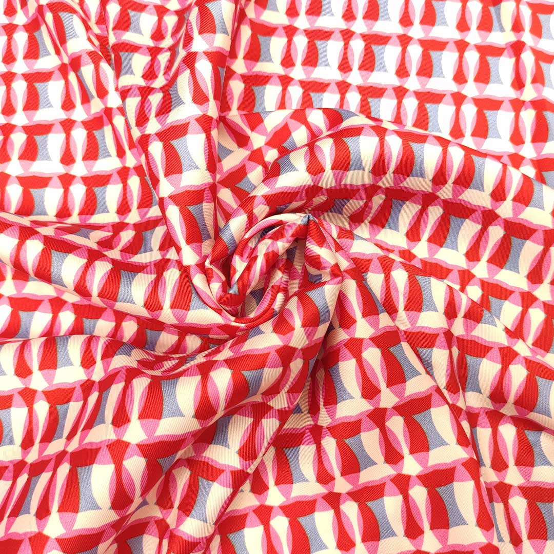 Tessuto Twill a fantasia motivo astratto rosso – rosa – bianco