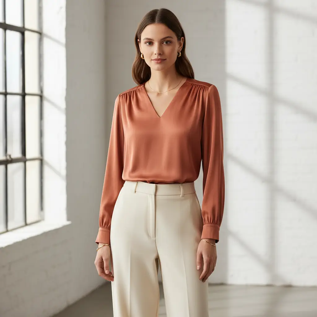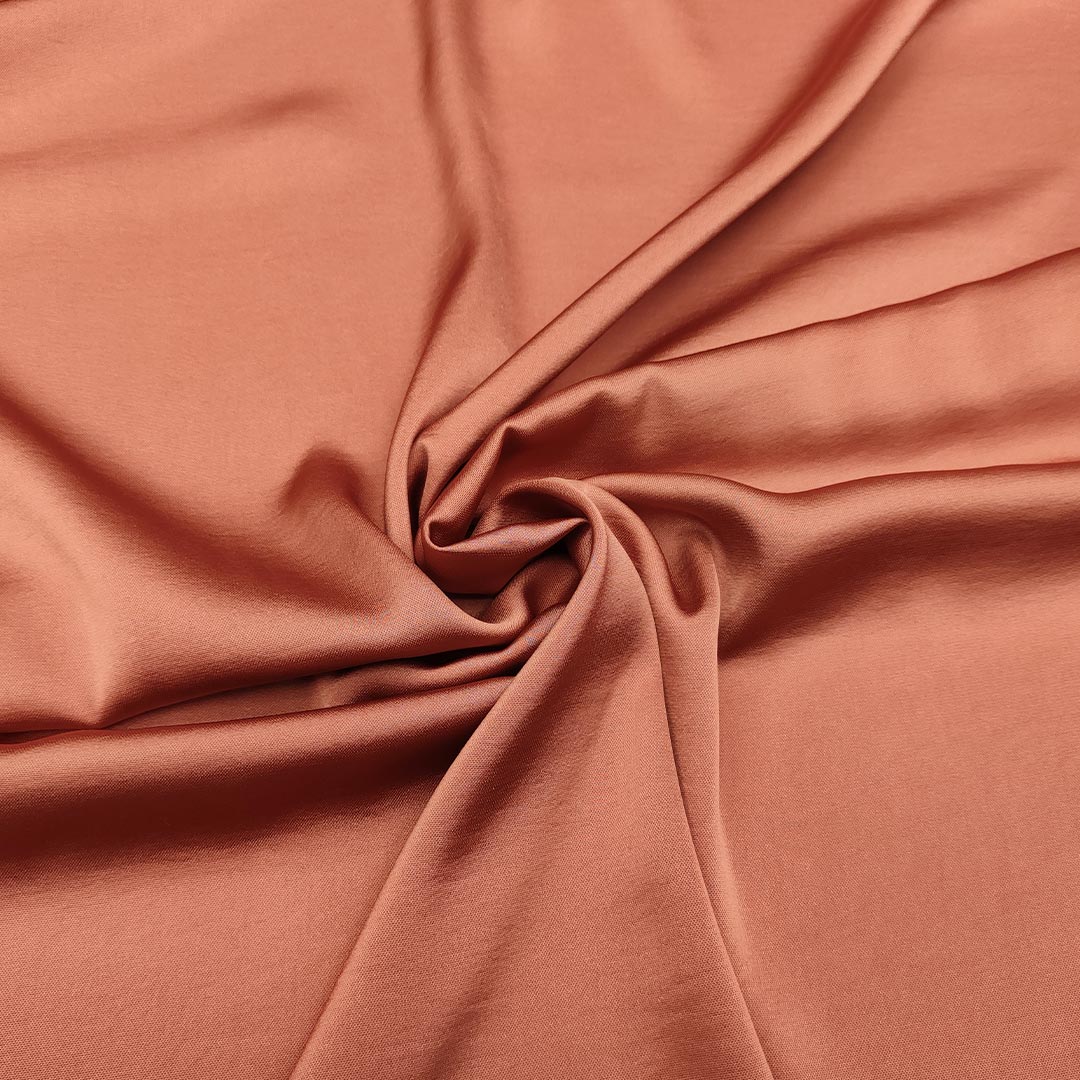 Tessuto Satin effetto stropicciato in tinta unita dalla mano morbida, leggera e fluente, leggermente elasticizzato, dall’aspetto lucido effetto seta si presta alla creazione di capi leggeri e morbidi come: camicie, abiti e bluse.