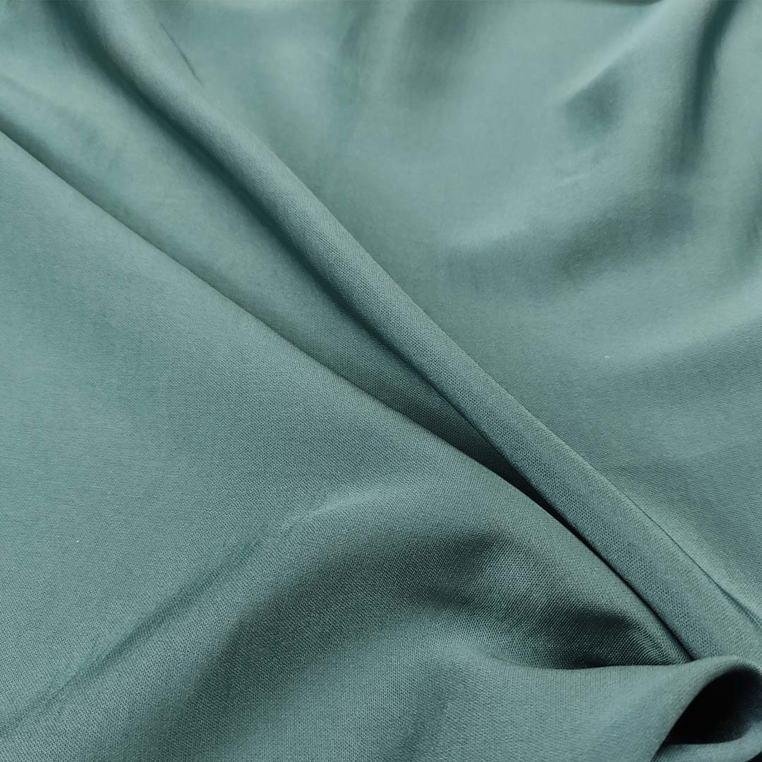 Tessuto Satin effetto stropicciato in tinta unita dalla mano morbida, leggera e fluente, leggermente elasticizzato, dall’aspetto lucido effetto seta si presta alla creazione di capi leggeri e morbidi come: camicie, abiti e bluse.