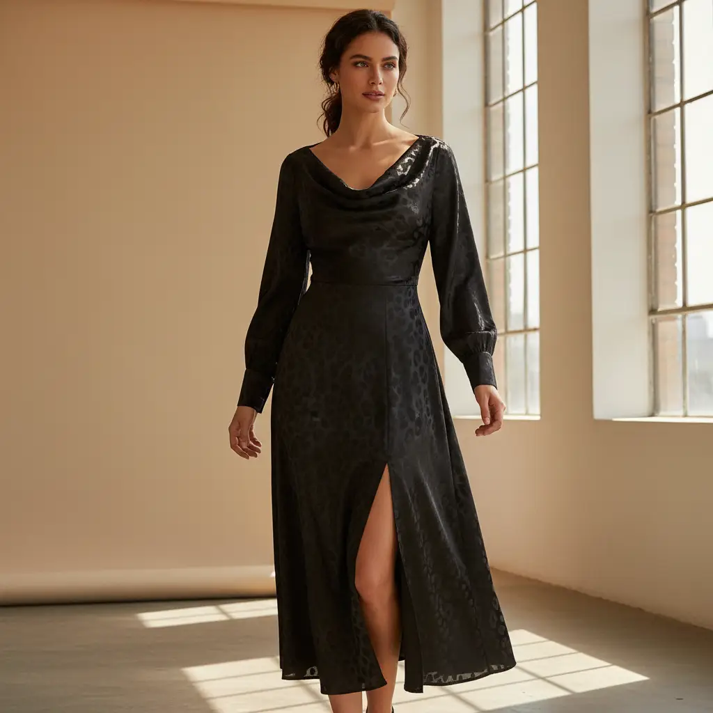 Tessuto Satin leggero elasticizzato jacquard dalla mano morbida, leggera e fluente, leggermente elasticizzato, dall’aspetto lucido effetto seta si presta alla creazione di capi leggeri e morbidi come: camicie, abiti e bluse. È largamente utilizzato come fodera per capi da cerimonia e cappotti o giacche.