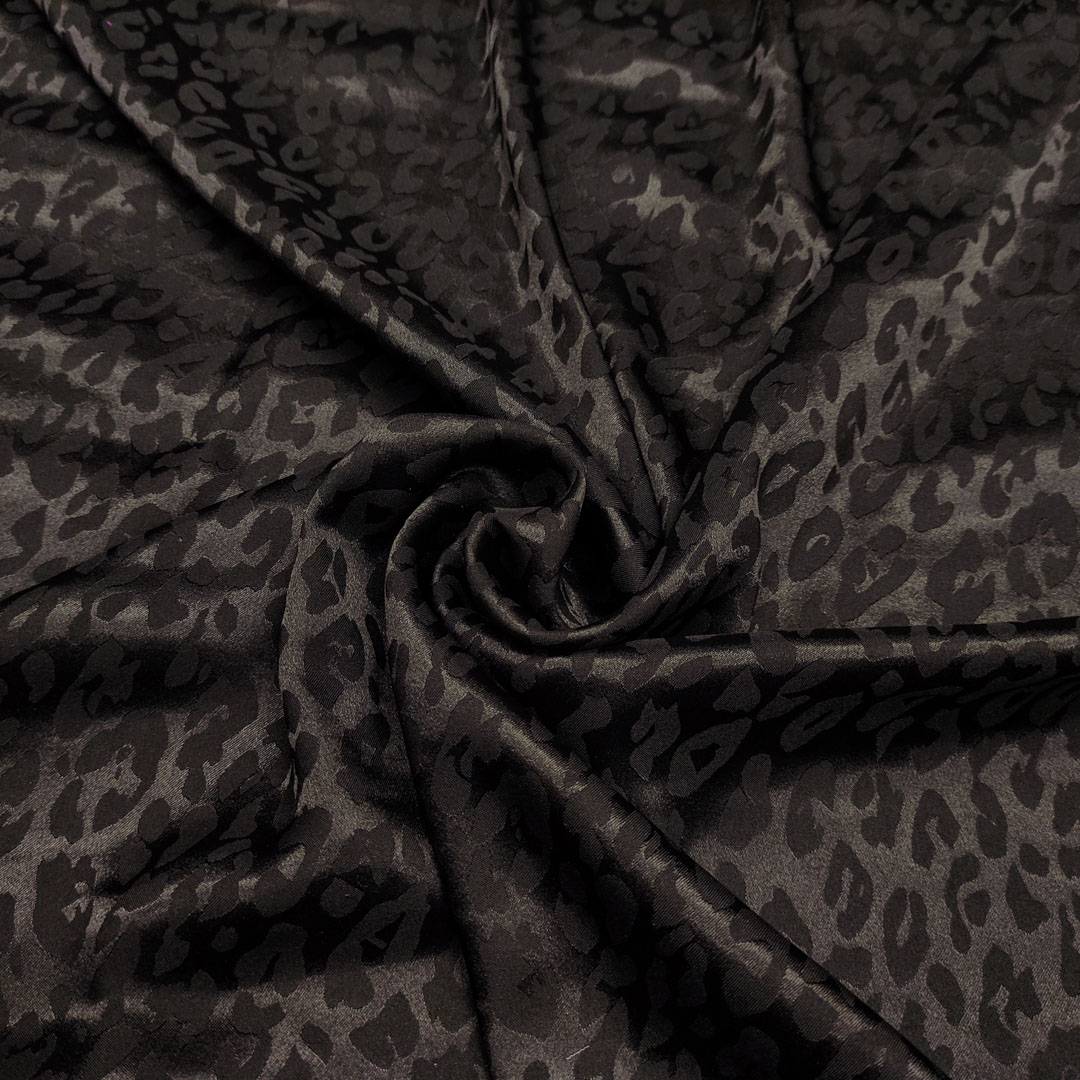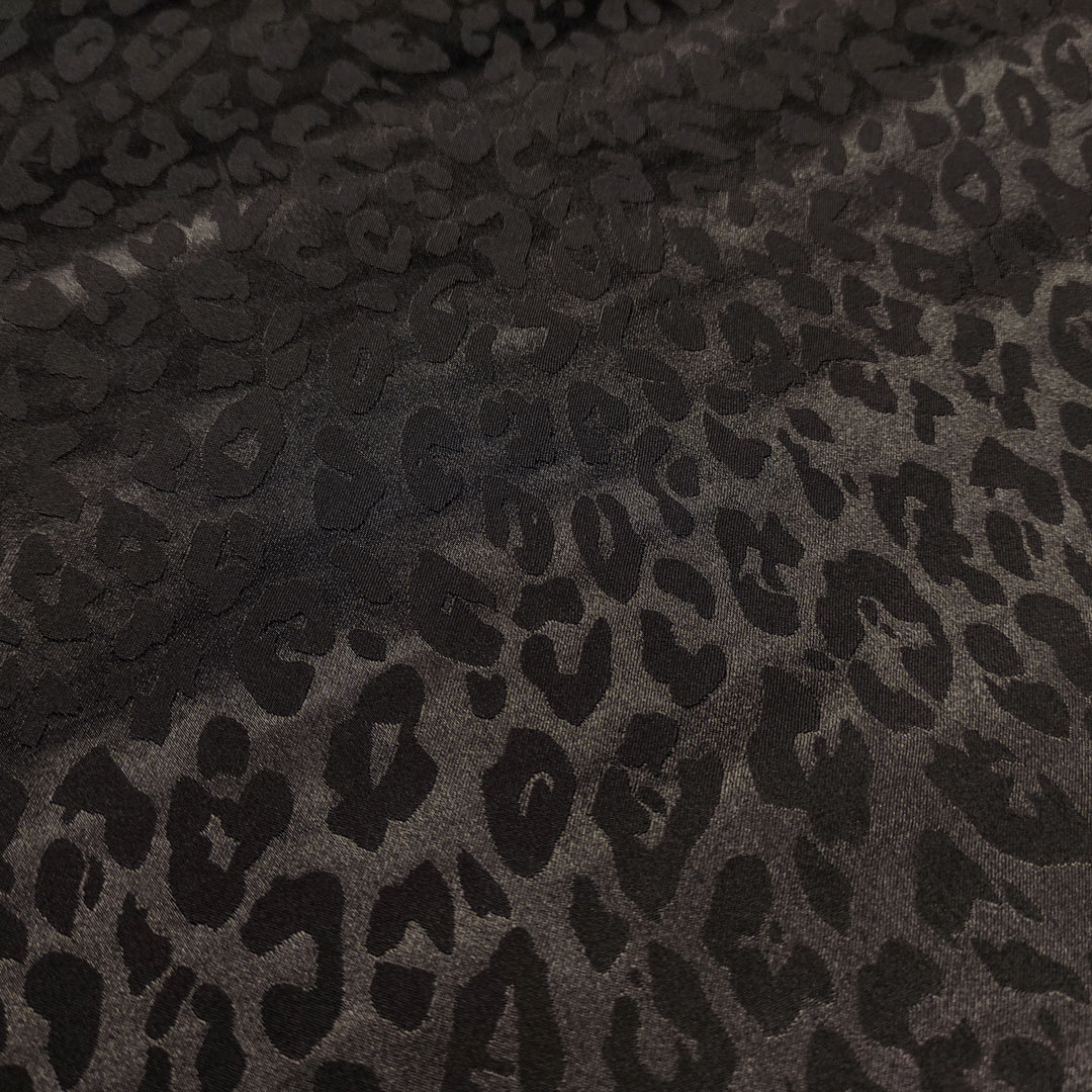 Tessuto Satin leggero elasticizzato jacquard motivo animalier nero