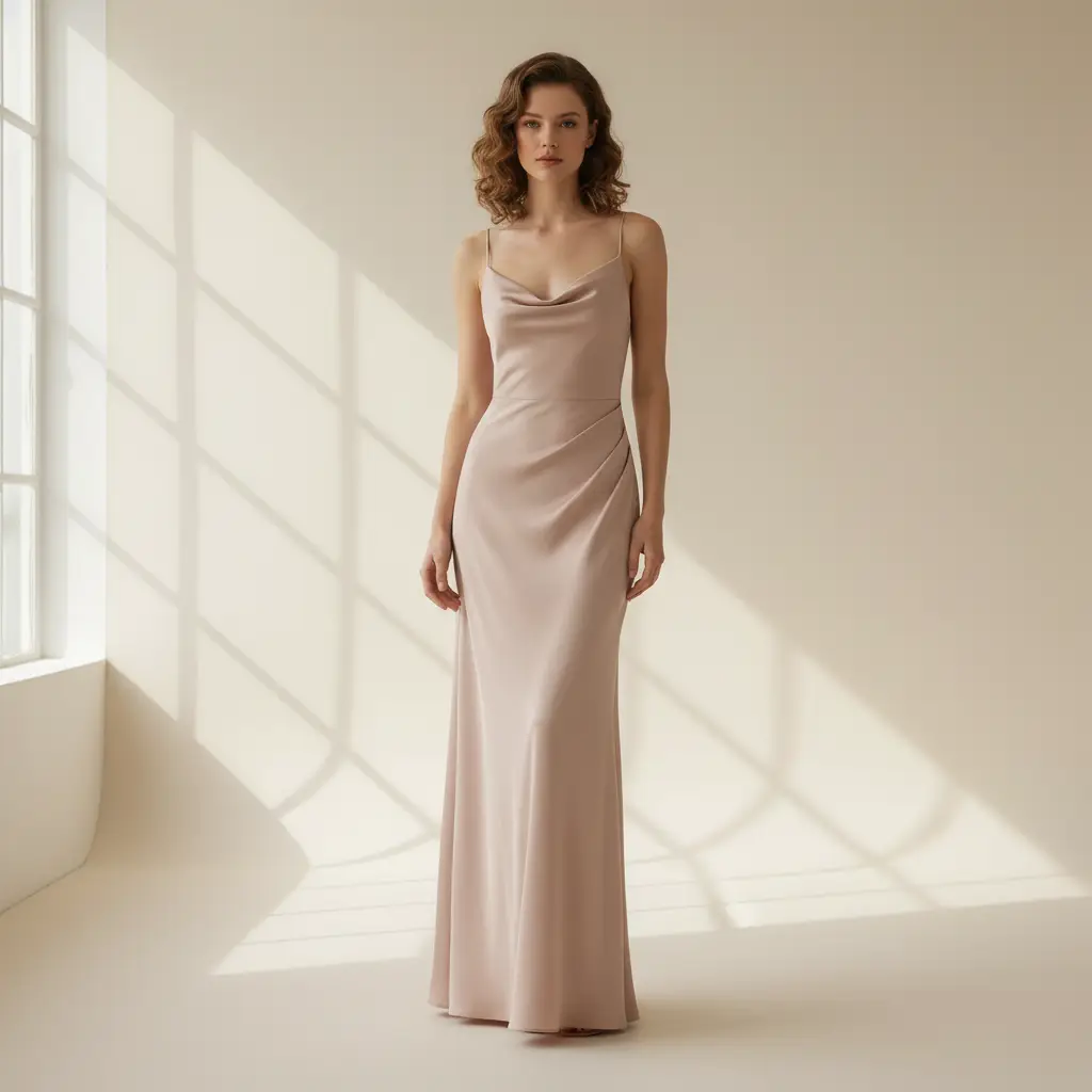 Tessuto Satin leggero elasticizzato tinta unita cipria