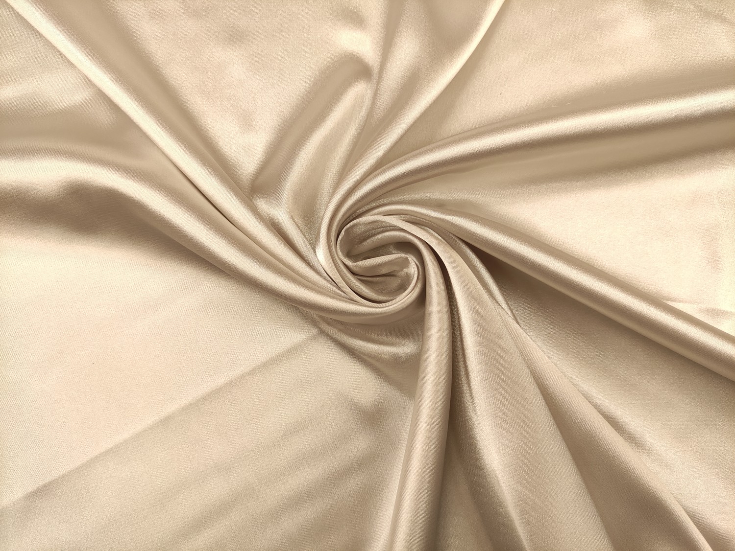 Tessuto Satin leggero elasticizzato in tinta unita dalla mano morbida, leggera e leggermente elasticizzata, dall’aspetto lucido si presta alla creazione di capi leggeri e morbidi come: camicie, abiti e bluse. È largamente utilizzato come fodera per capi da cerimonia e cappotti o giacche.