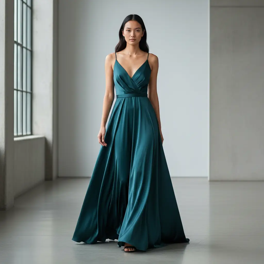 Tessuto Satin leggero elasticizzato tinta unita petrolio scuro