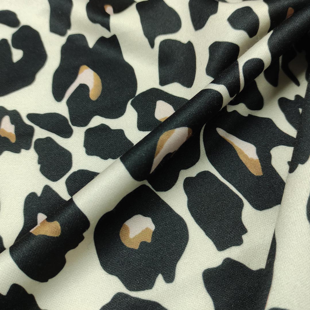 Tessuto Scuba Crepe a fantasia motivo animalier nero – beige – rosa