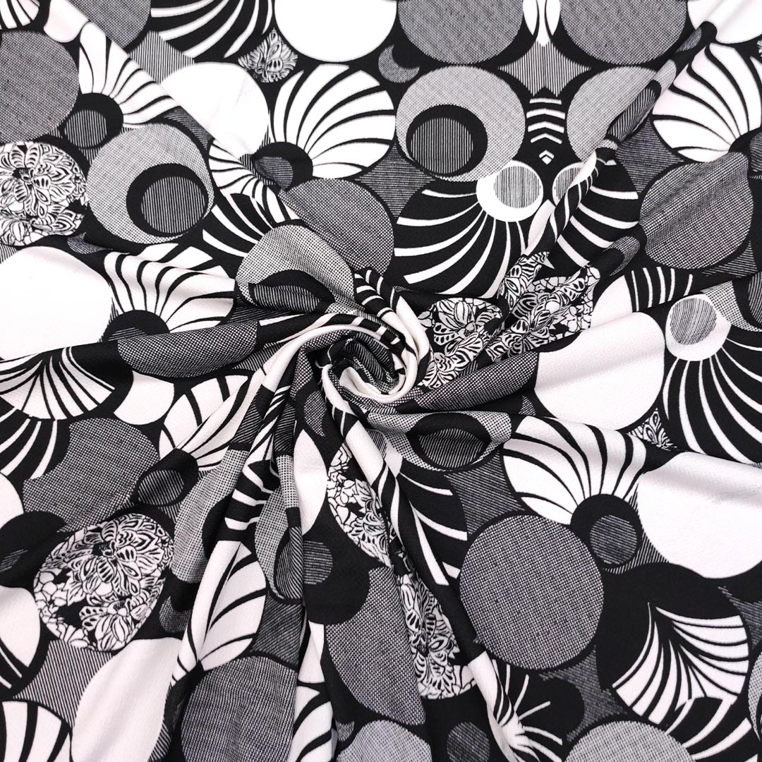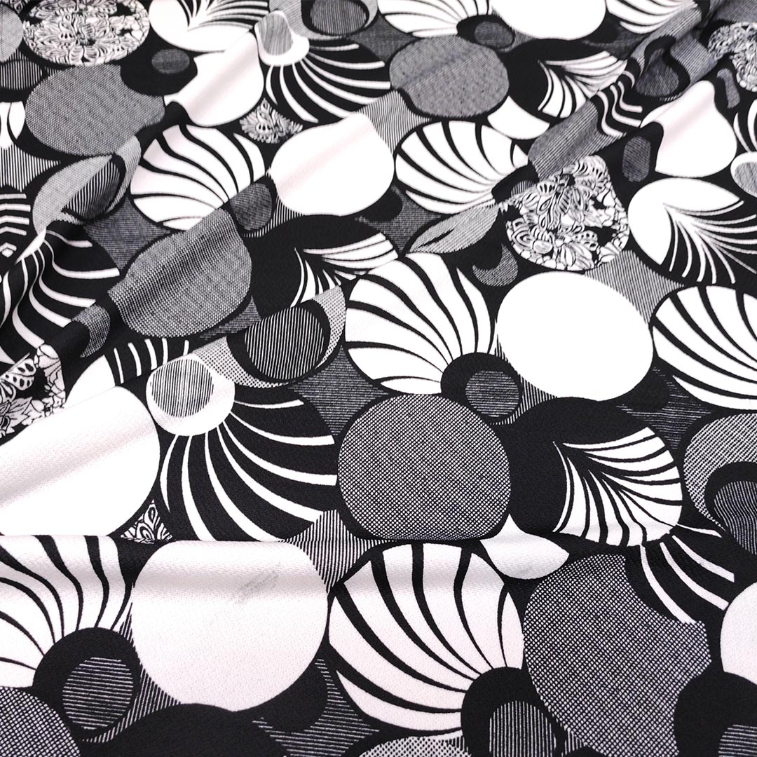 Tessuto Scuba Crepe a fantasia motivo astratto grigio – bianco – nero