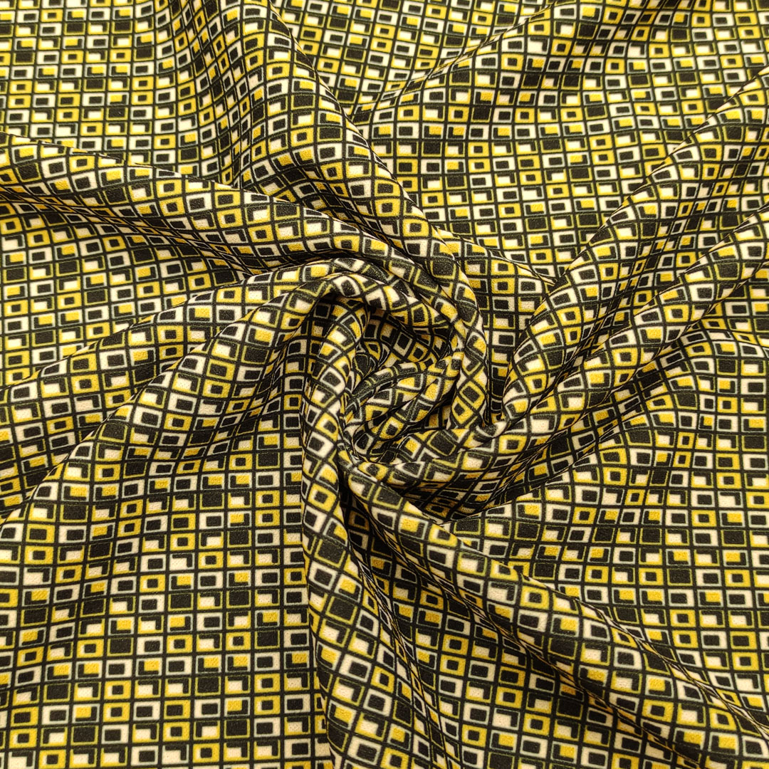 Tessuto Scuba Crepe a fantasia motivo geometrico nero – panna – giallo